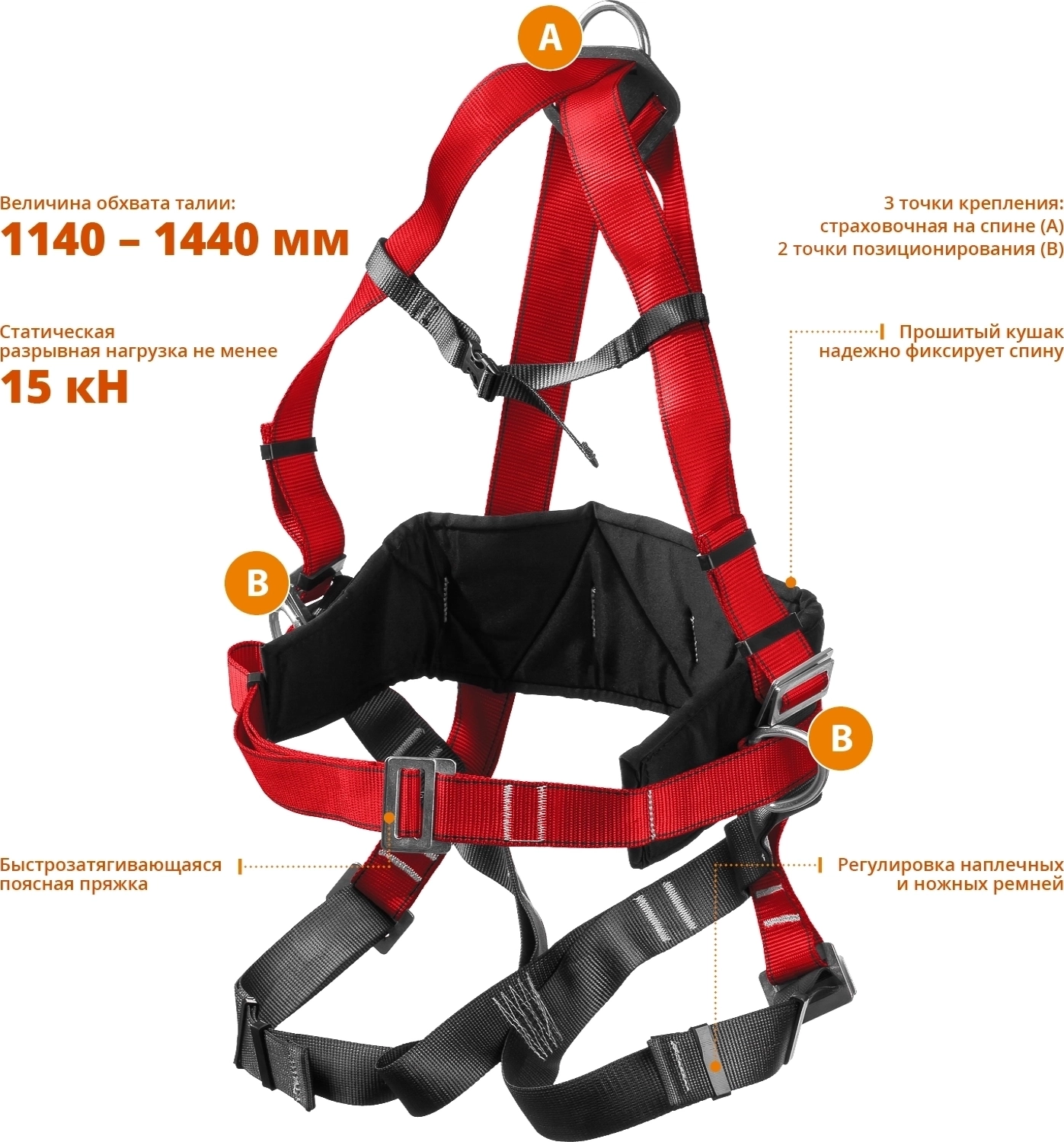 Страховочная привязь служит элементом страховочной системы для охвата тела с целью предотвращения падения.