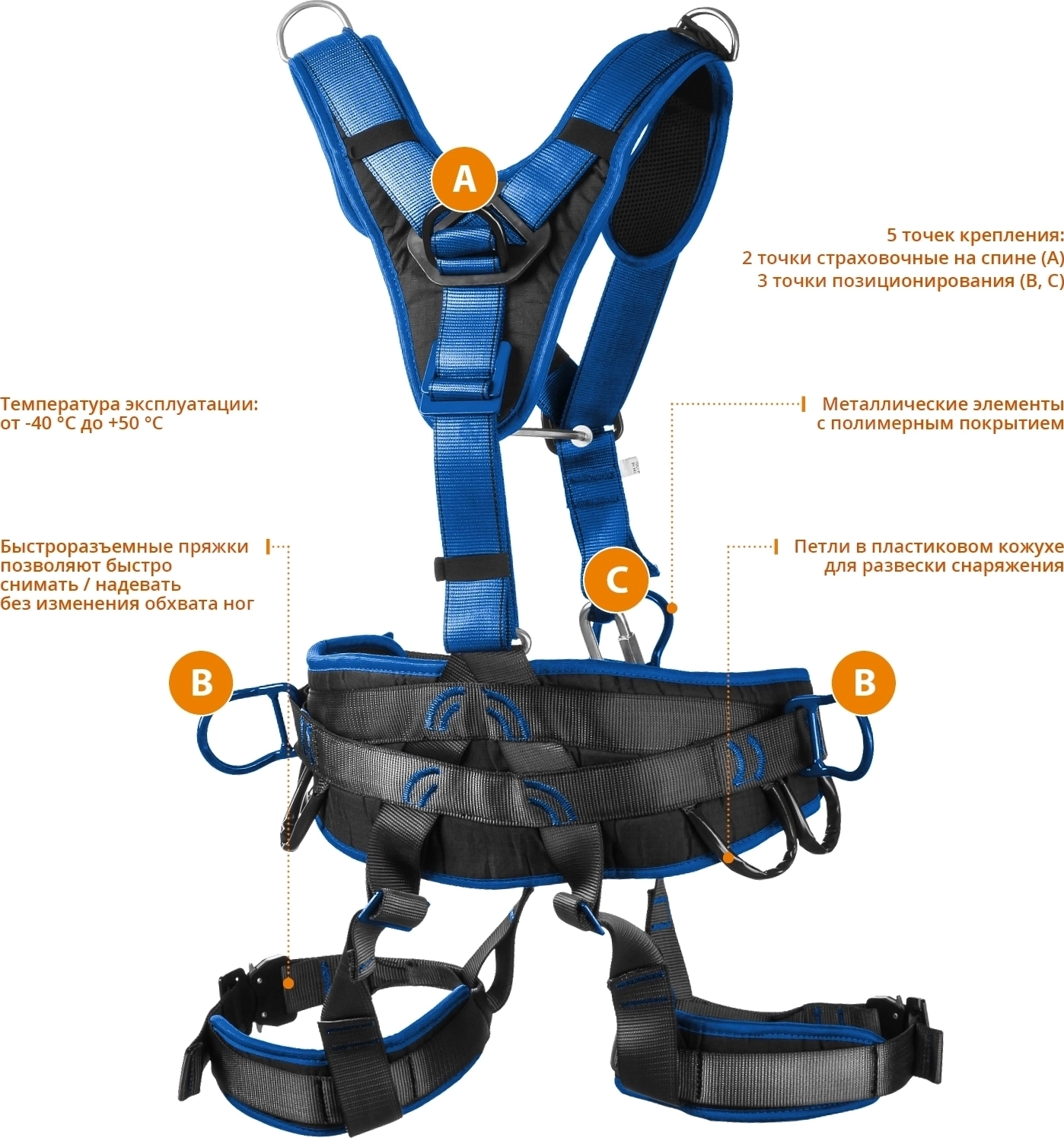 Страховочная привязь служит элементом страховочной системы для охвата тела с целью предотвращения падения.