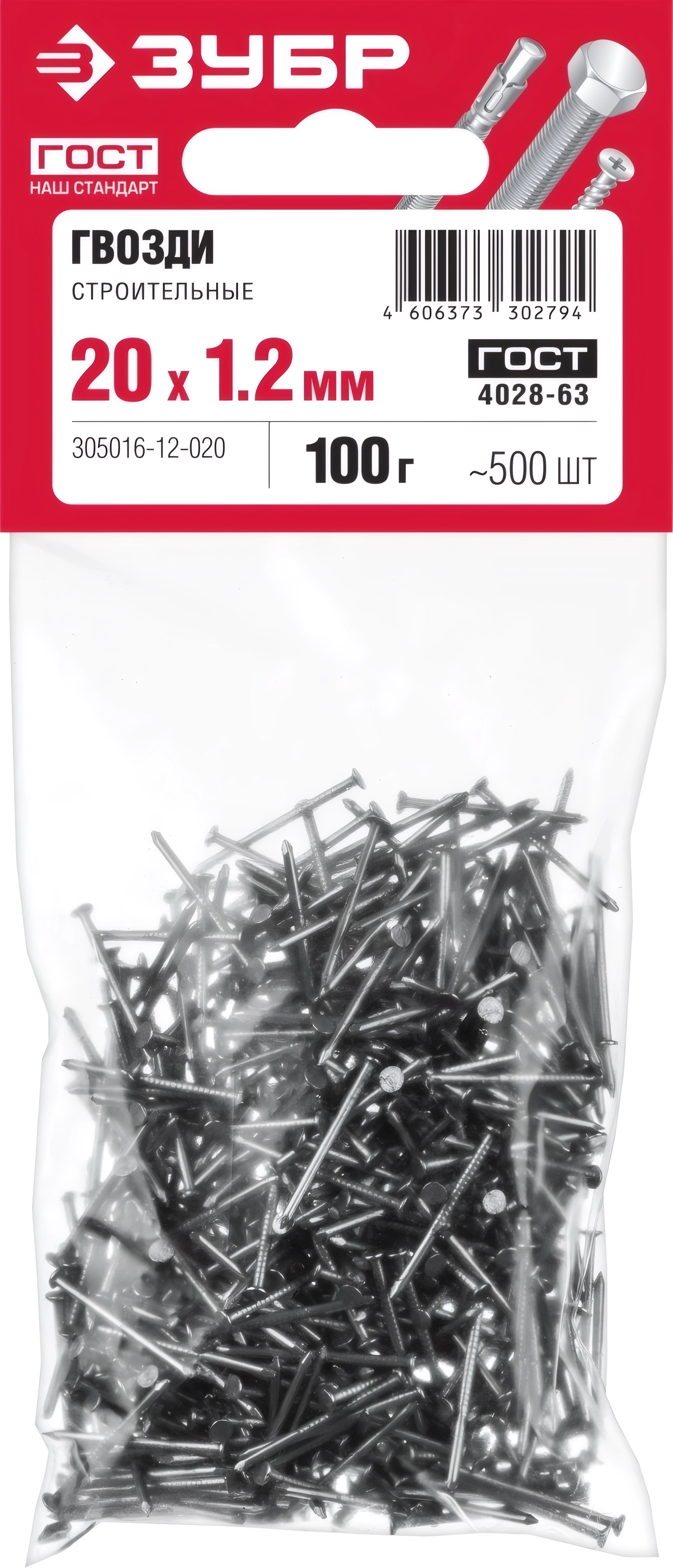 Строительные гвозди ЗУБР ГОСТ 4028-63, 20 x 1.2 мм, 100 г
