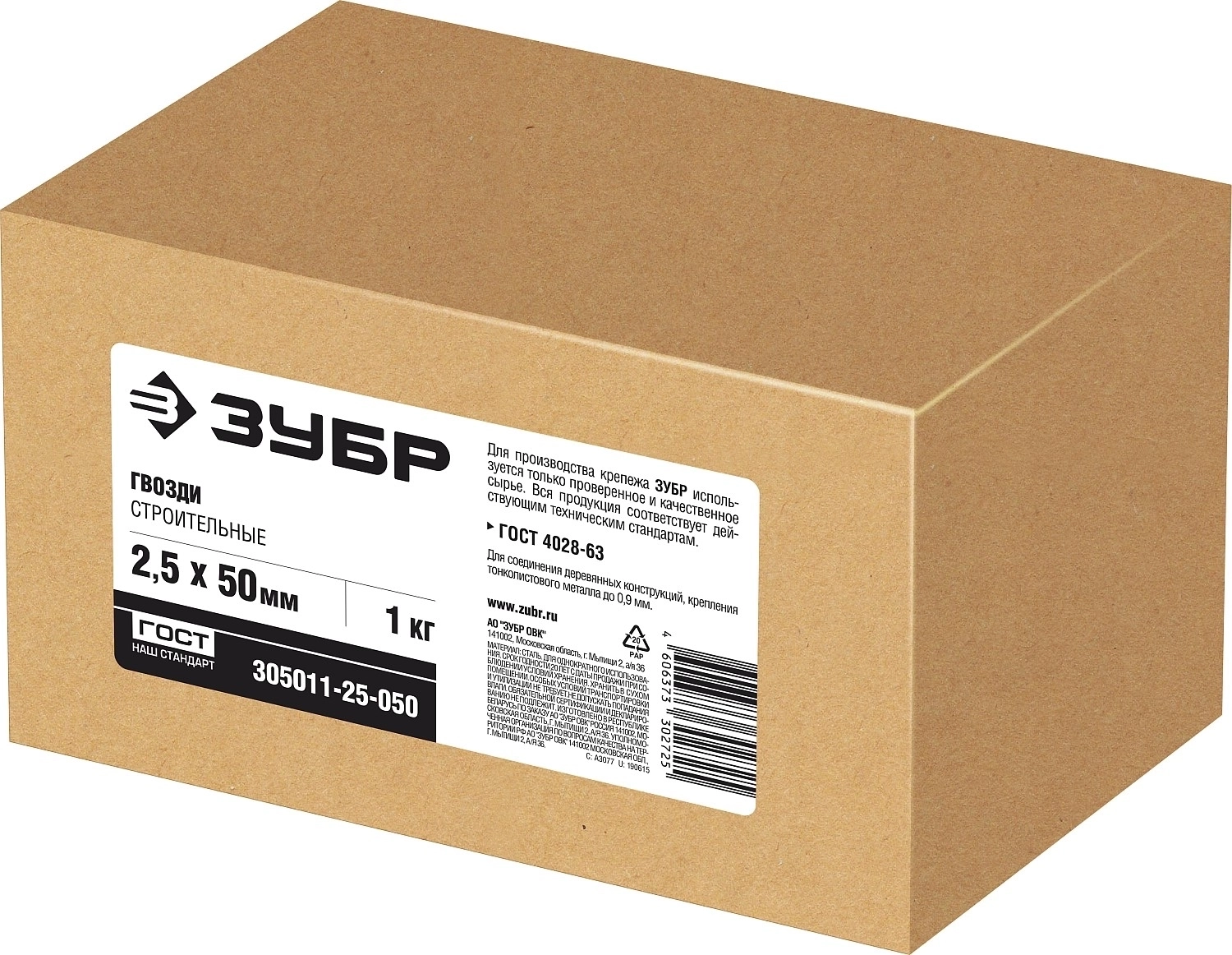 Строительные гвозди ЗУБР ГОСТ 4028-63, 50 x 2.5 мм, 1 кг