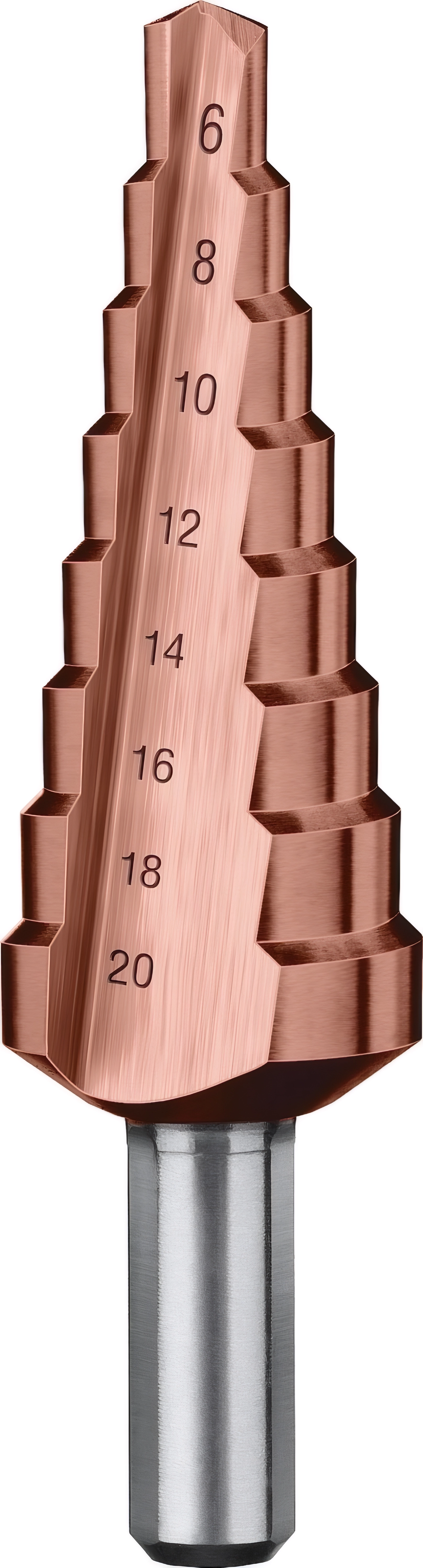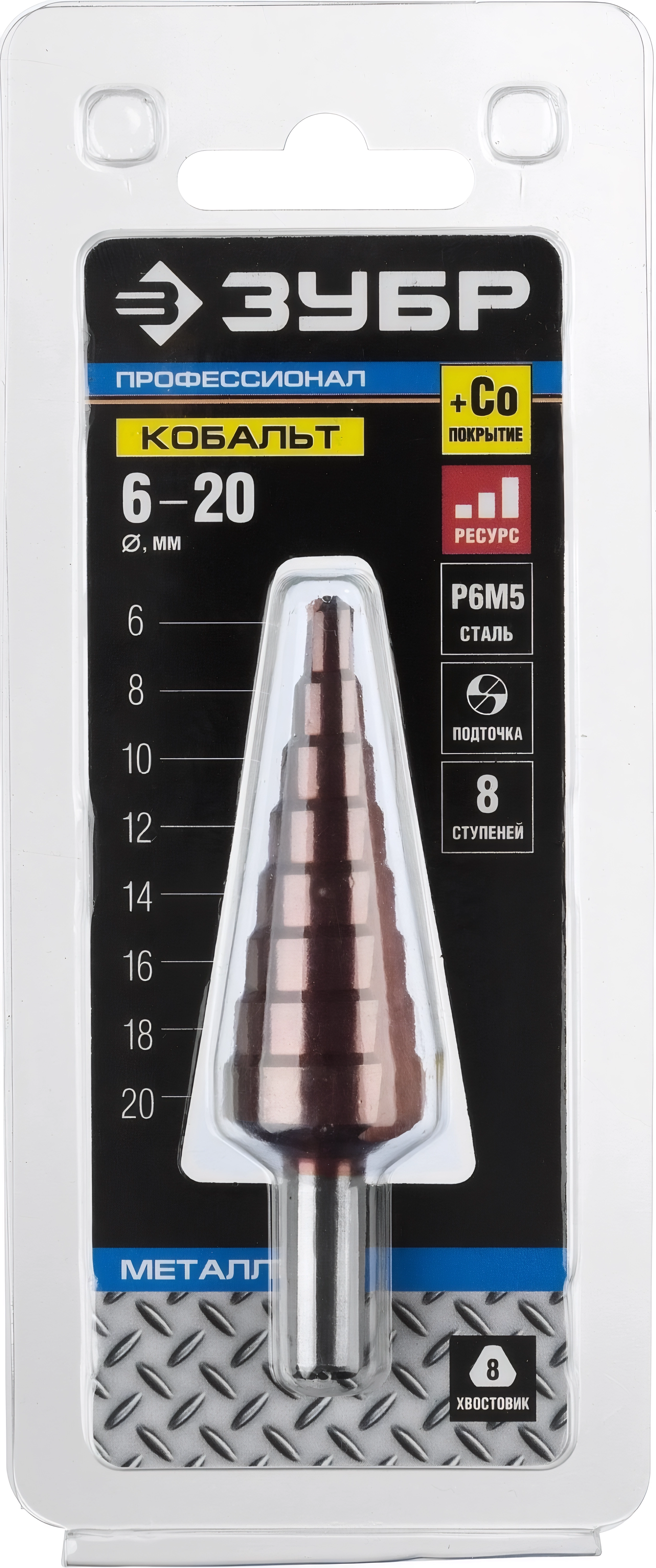 Ступенчатое сверло ЗУБР Кобальт 6-20 мм 8 ступеней сталь Р6М5 кобальтовое покрытие