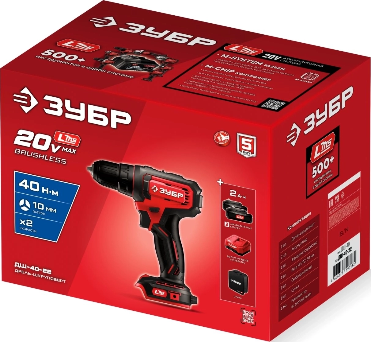 Дрель-шуруповерт ЗУБР 20 В, 40 Н·м, 2 АКБ LMS (2 А·ч)