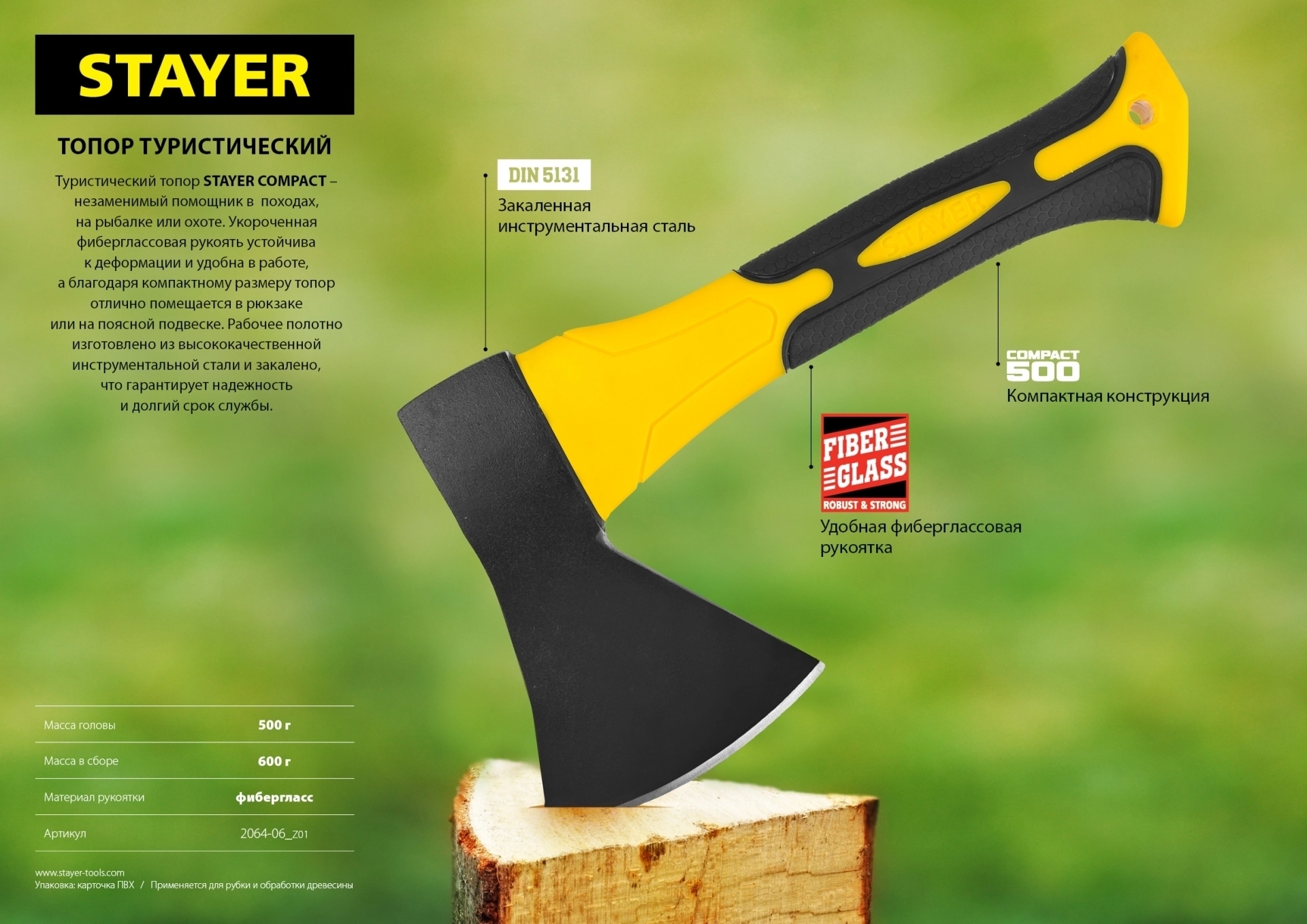 Суперкомпактный топор Professional STAYER COMPACT 500/600 г 250 мм
