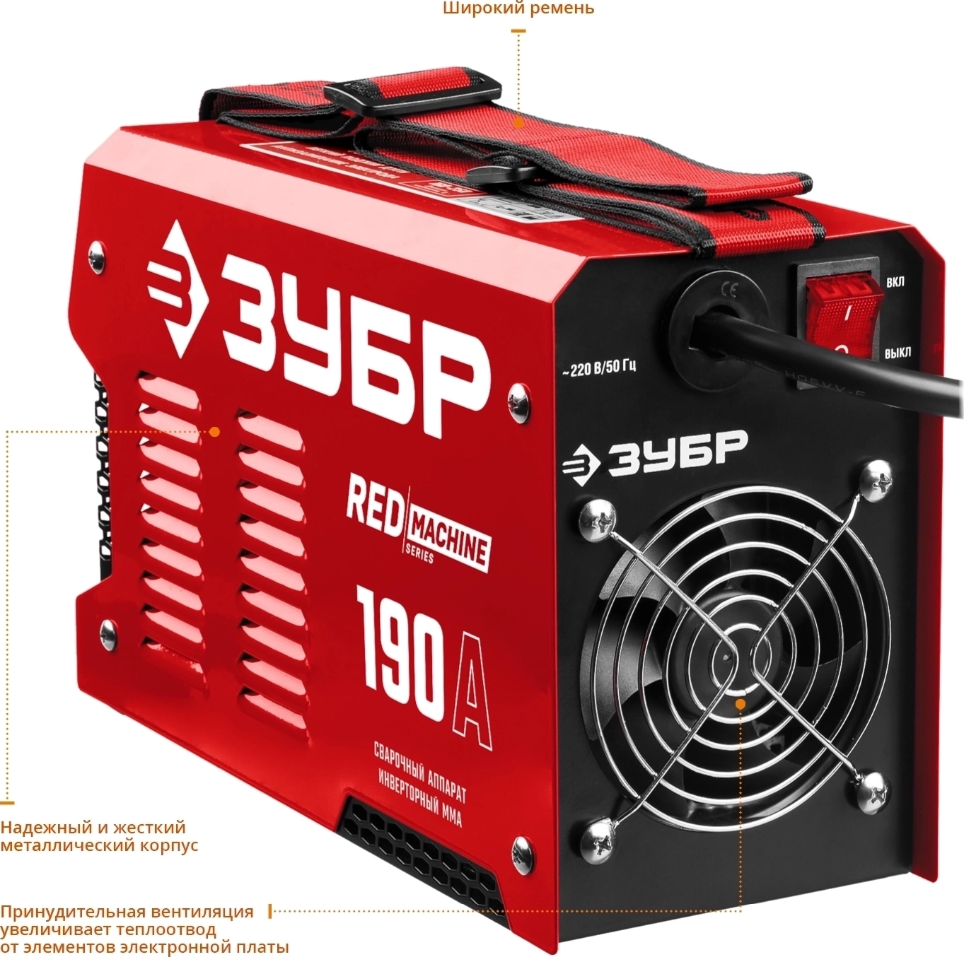 Сварочный аппарат инверторный ЗУБР ММА 190 А, RED MACHINE, макс. электрод d5.0 мм