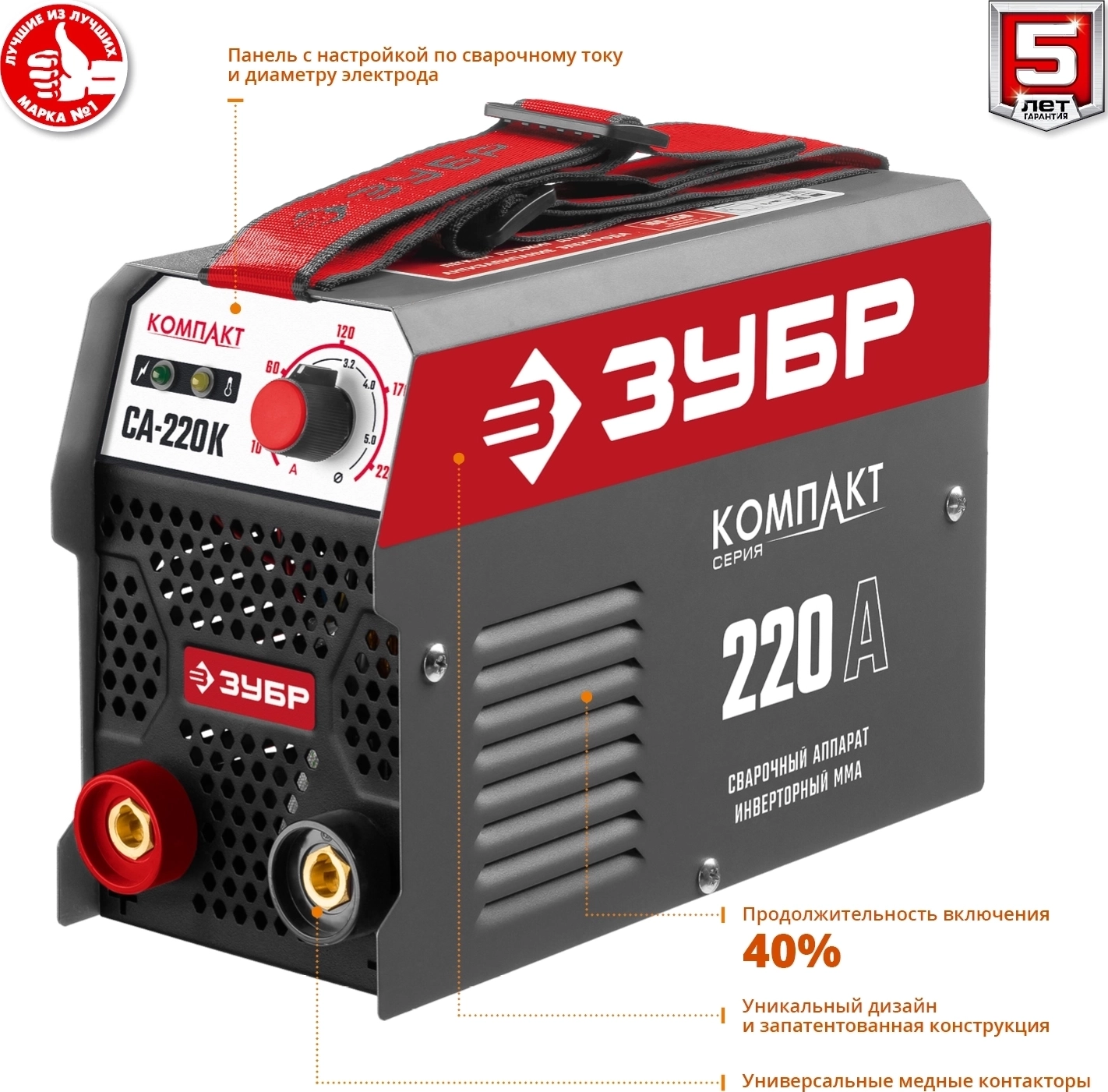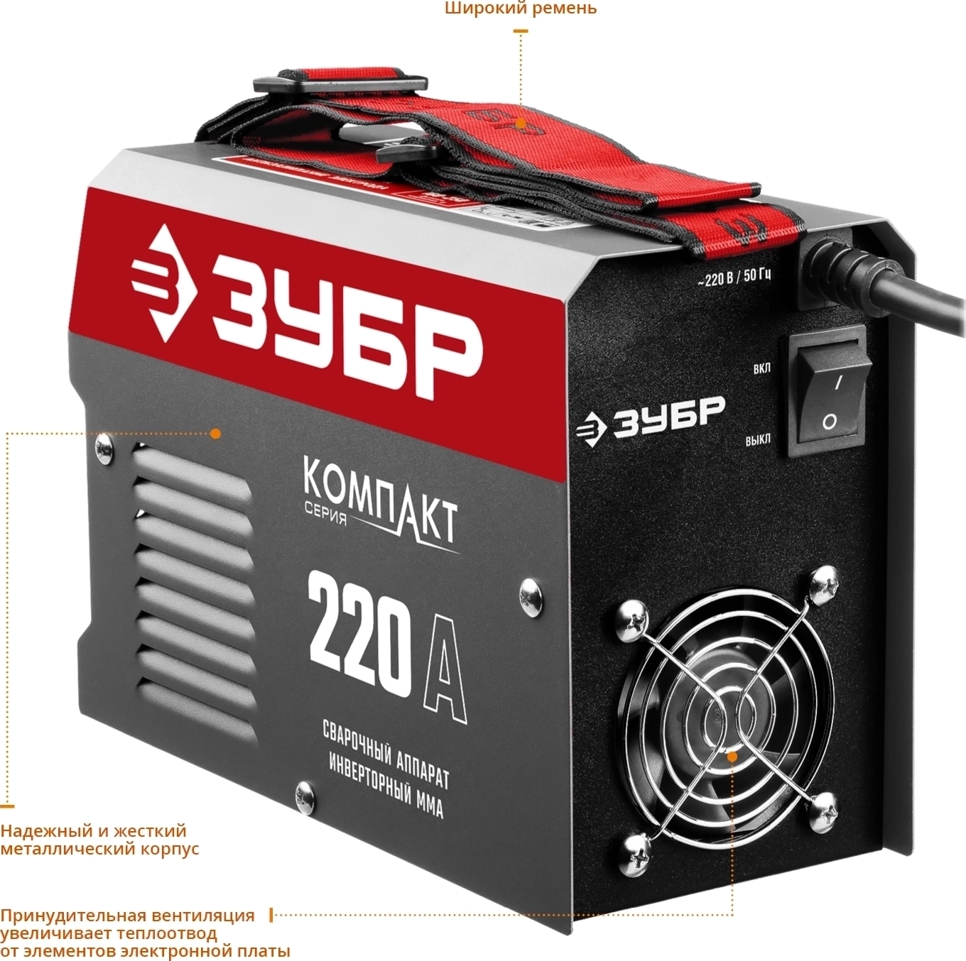 Сварочный аппарат инверторный ЗУБР ММА 220 А, КОМПАКТ, макс. электрод d5.0 мм