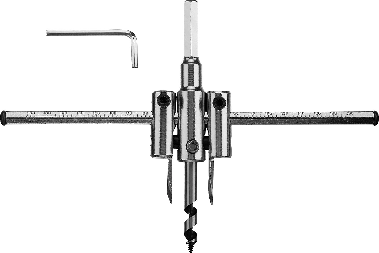 Регулируемое сверло по дереву d 40-200 мм, глубина реза 30 мм арт. 102025