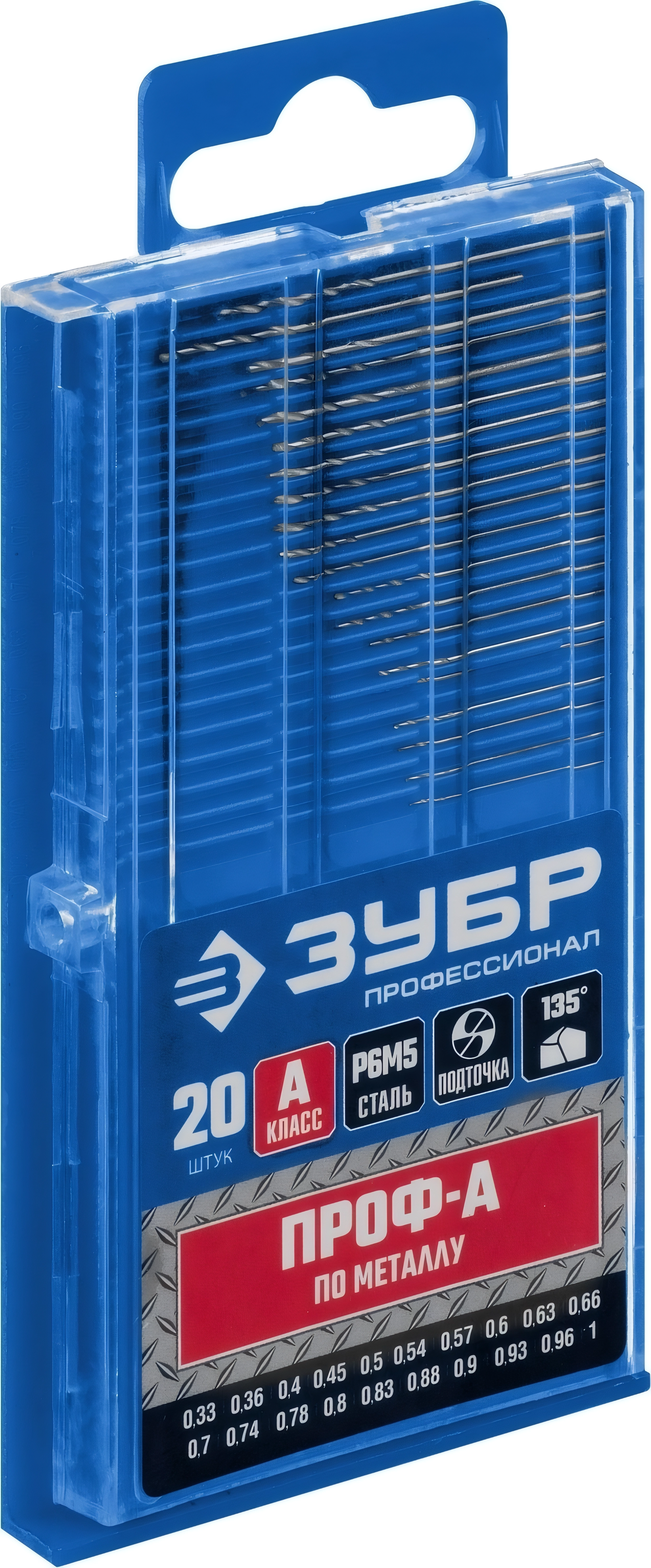 Набор сверл по металлу ПРОФ-А 20 шт 0.33-1.0 мм сталь Р6М5 класс А для печатных плат арт. 102969