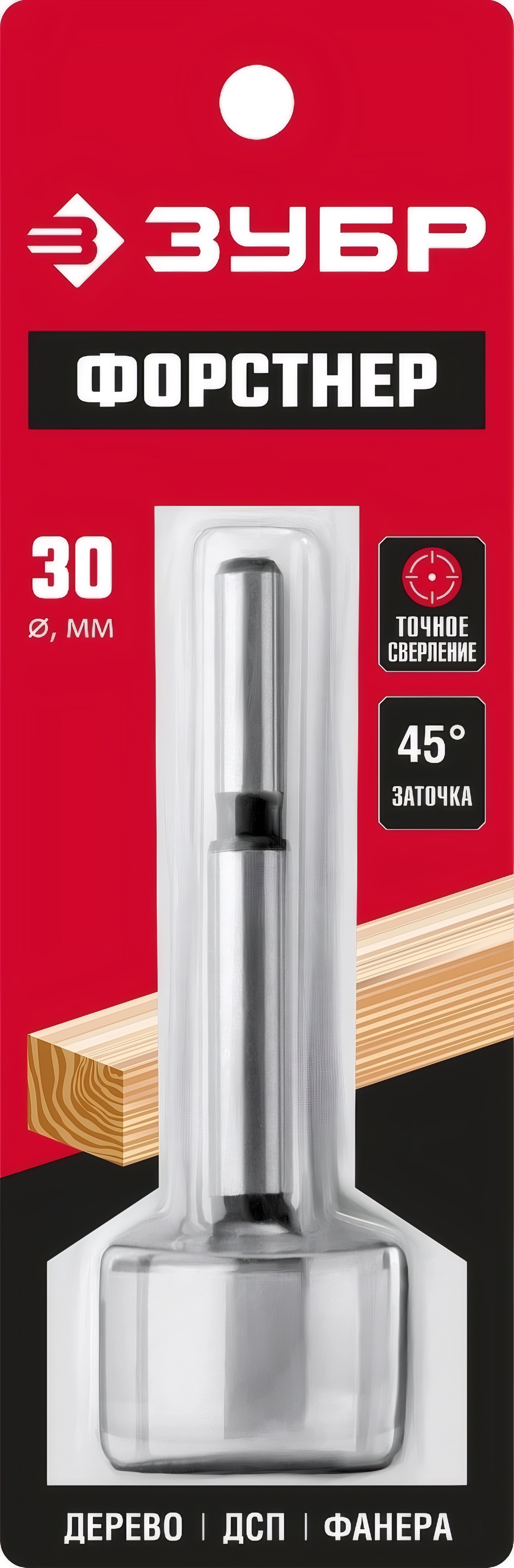 Сверло Форстнера по дереву ДСП ЗУБР Форстнер 30 x 90 мм фанере