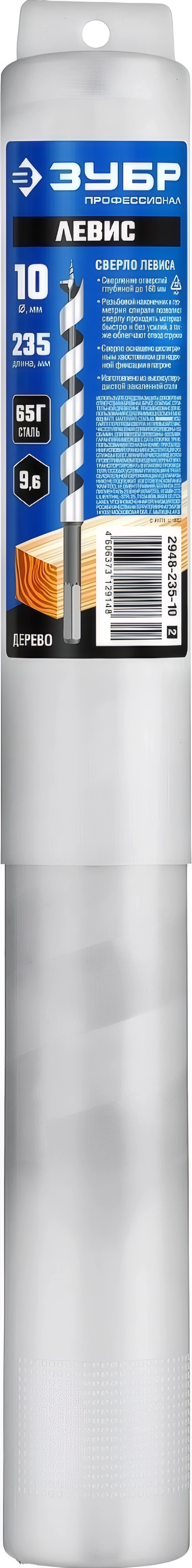 Сверло левиса по дереву ЗУБР 10 x 235/160 мм шестигранный хвостовик