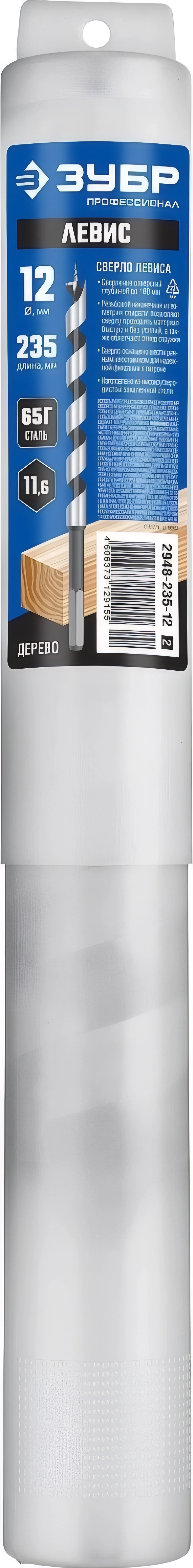 Сверло левиса по дереву ЗУБР 12 x 235/160 мм шестигранный хвостовик