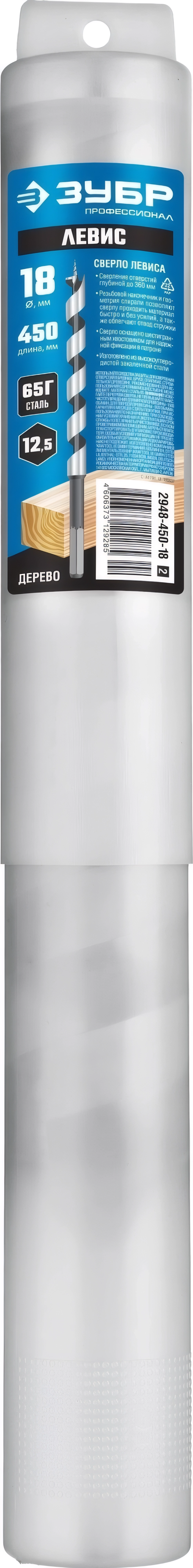 Сверло левиса по дереву ЗУБР 18 x 450/360 мм шестигранный хвостовик