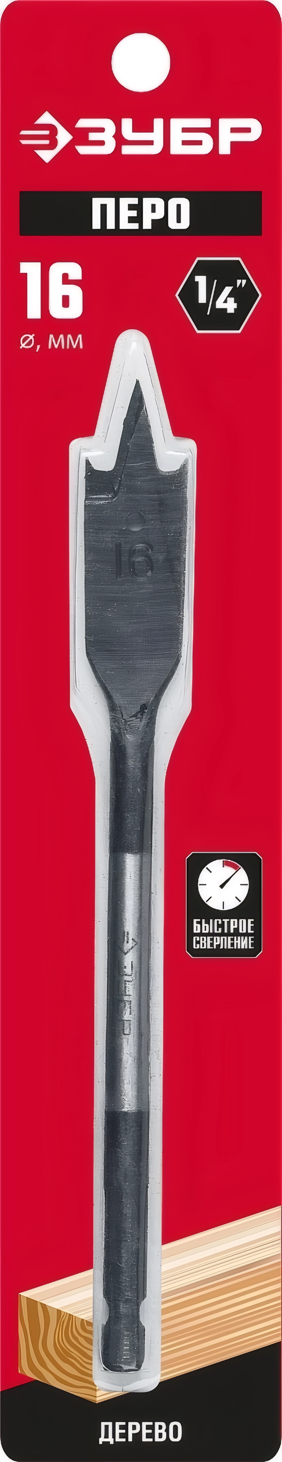 Сверло по дереву ЗУБР 16 x 152 мм, с боковыми подрезателями, перовое