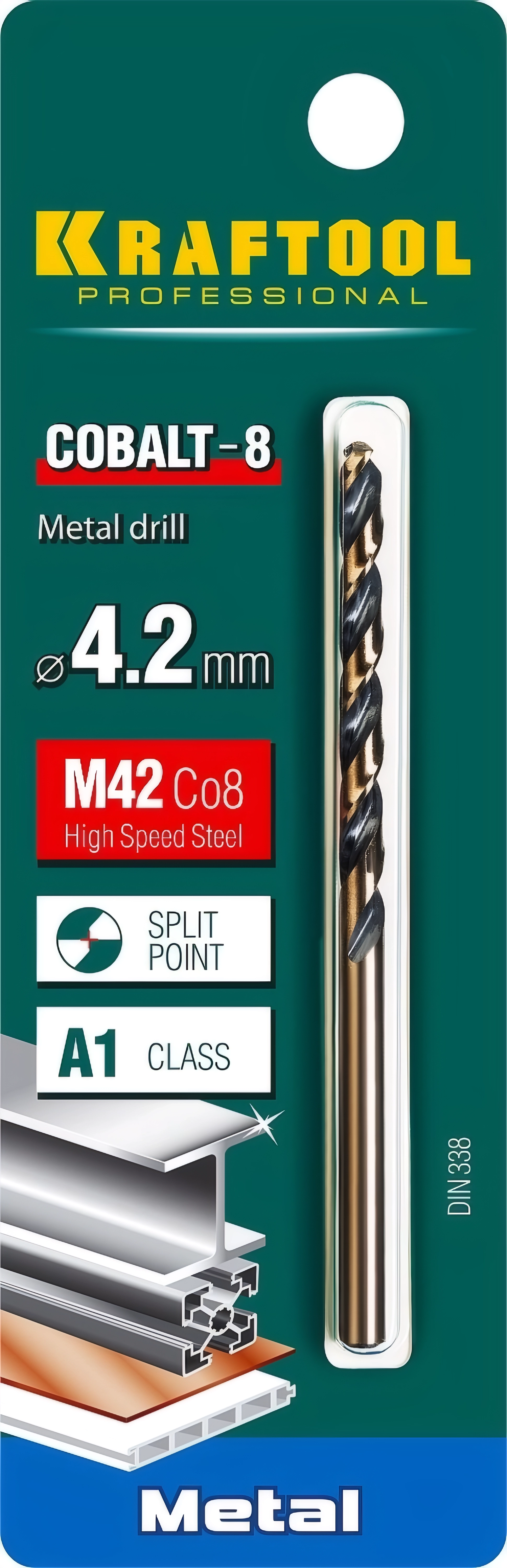 Сверло по металлу KRAFTOOL COBALT-8, 4.2 х 75 мм, сталь М42, HSS-Co(8%)