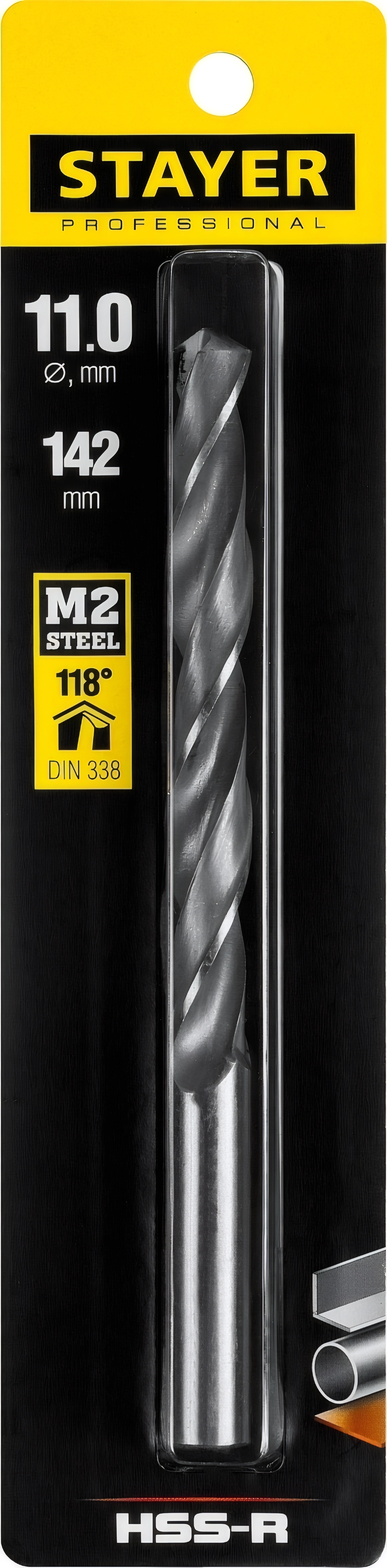 Сверло по металлу Professional STAYER HSS-R 11.0 х 142 мм быстрорежущая сталь P6M5