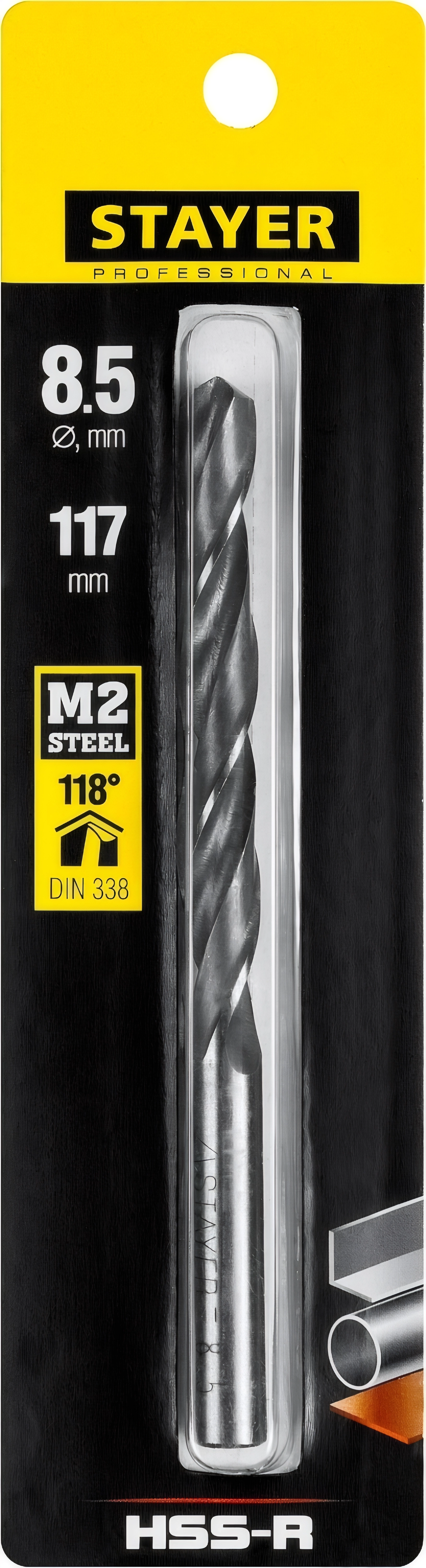 Сверло по металлу Professional STAYER HSS-R 8.5 х 117 мм быстрорежущая сталь P6M5