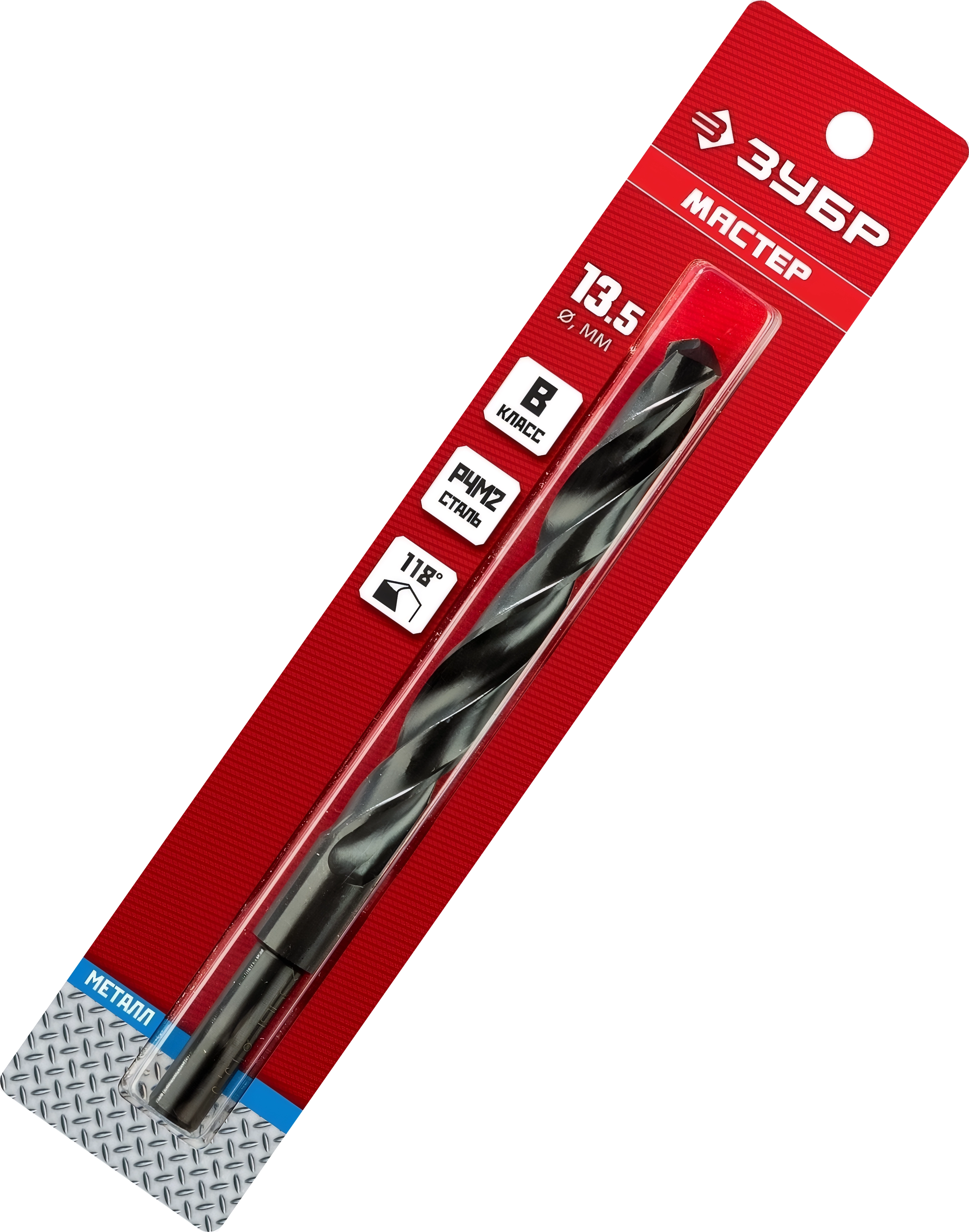 Сверло по металлу ЗУБР 13.5 х 160 мм, сталь Р4М2, класс В, проточенный хвостовик