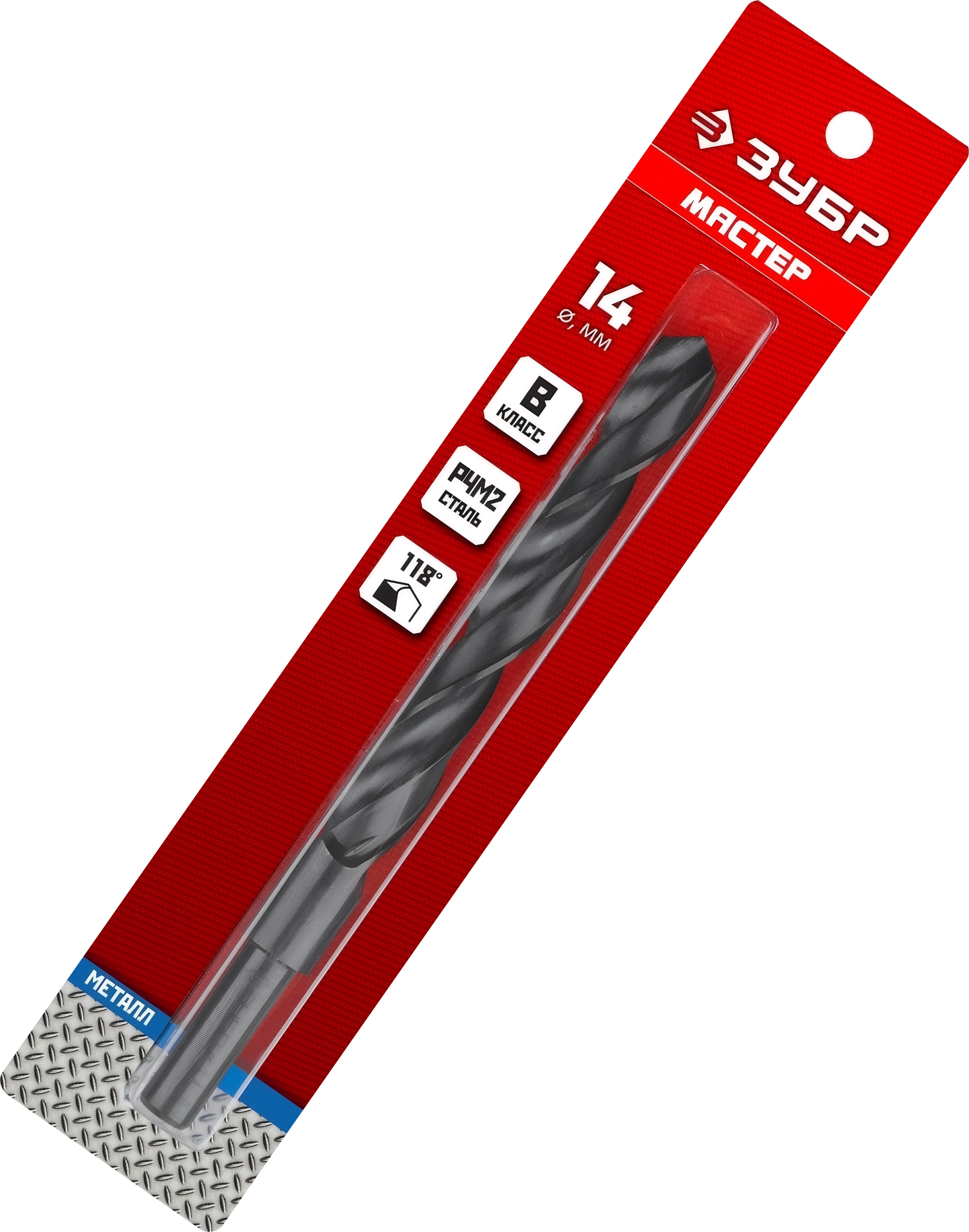 Сверло по металлу ЗУБР 14.0 х 160 мм, сталь Р4М2, класс В, проточенный хвостовик