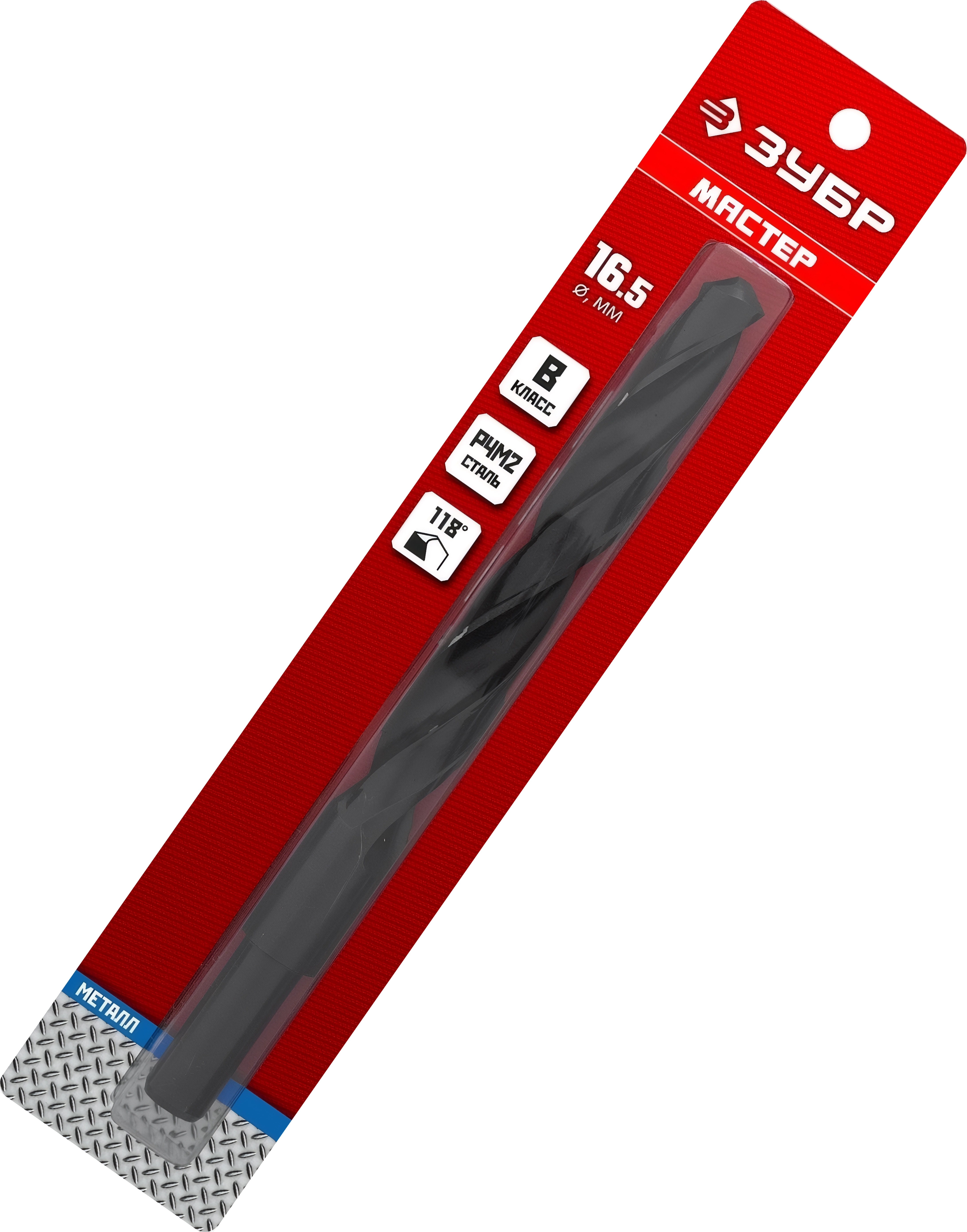 Сверло по металлу ЗУБР 16.5 х 184 мм, сталь Р4М2, класс В, проточенный хвостовик