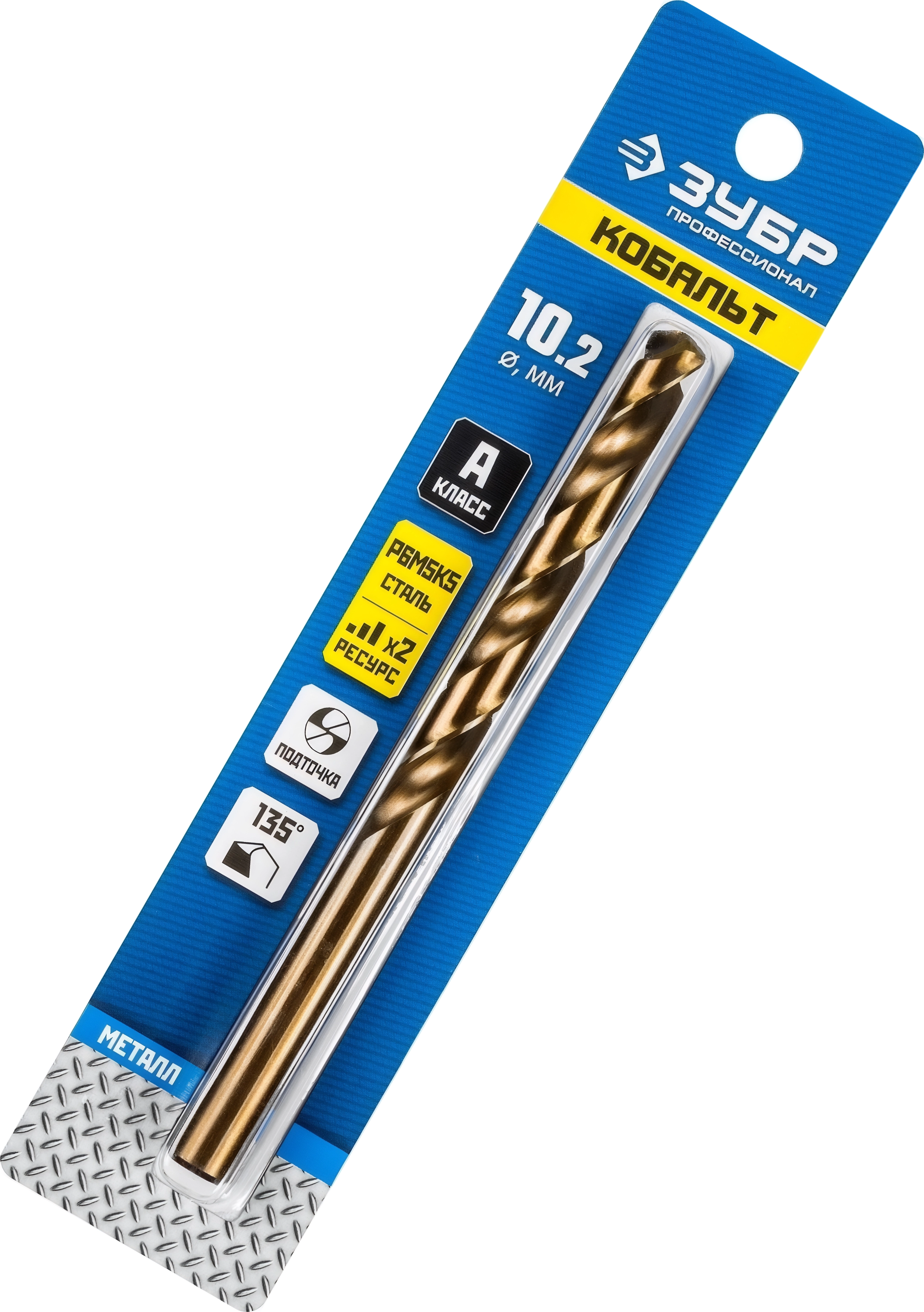 Сверло по металлу ЗУБР Кобальт 10.2 х 133 мм сталь Р6М5К5 класс А