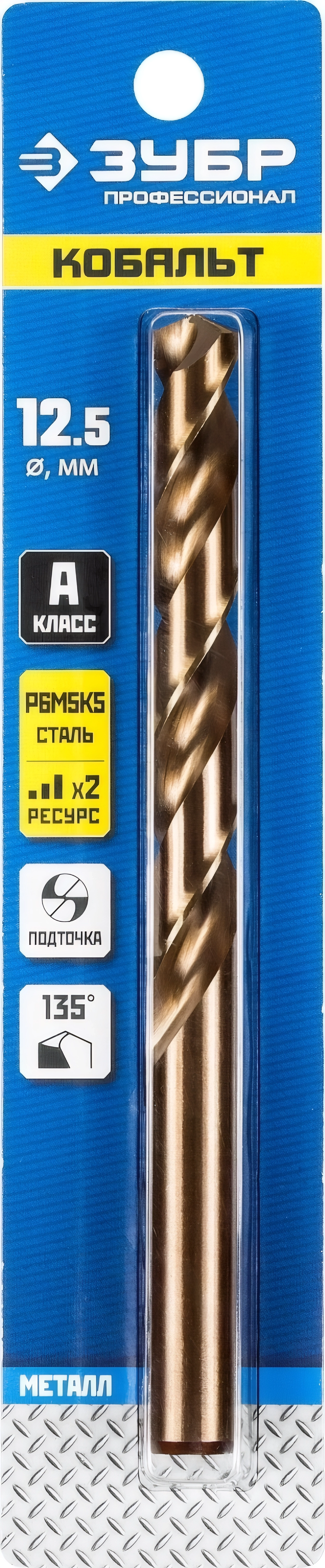 Сверло по металлу ЗУБР Кобальт 12.5 х 151 мм сталь Р6М5К5 класс А