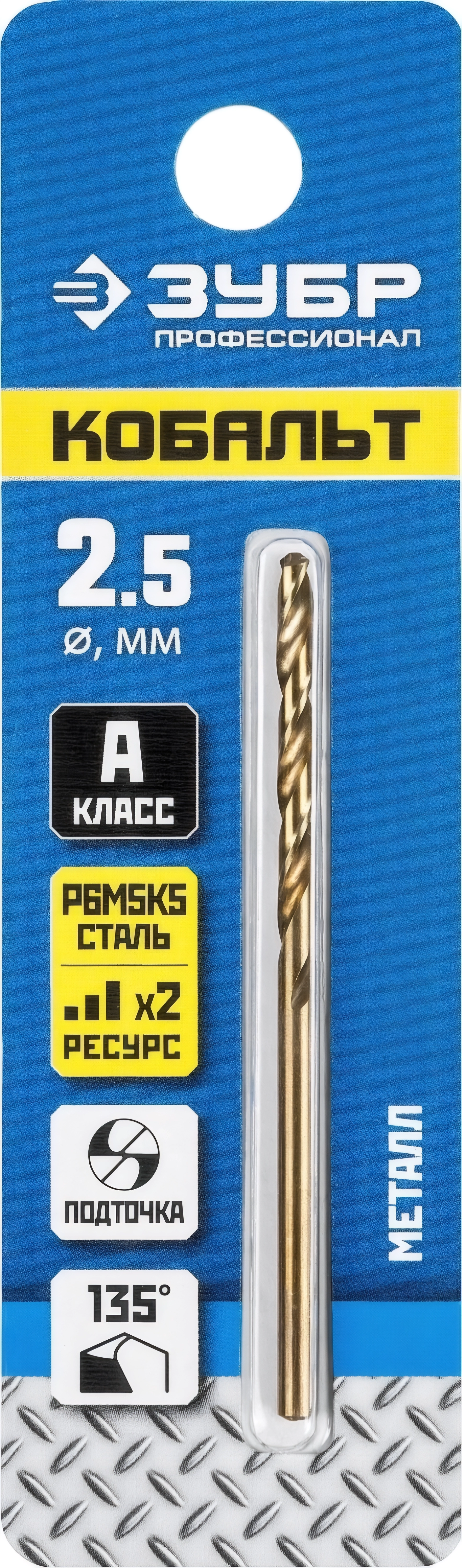 Сверло по металлу ЗУБР Кобальт 2.5 х 57 мм сталь Р6М5К5 класс А
