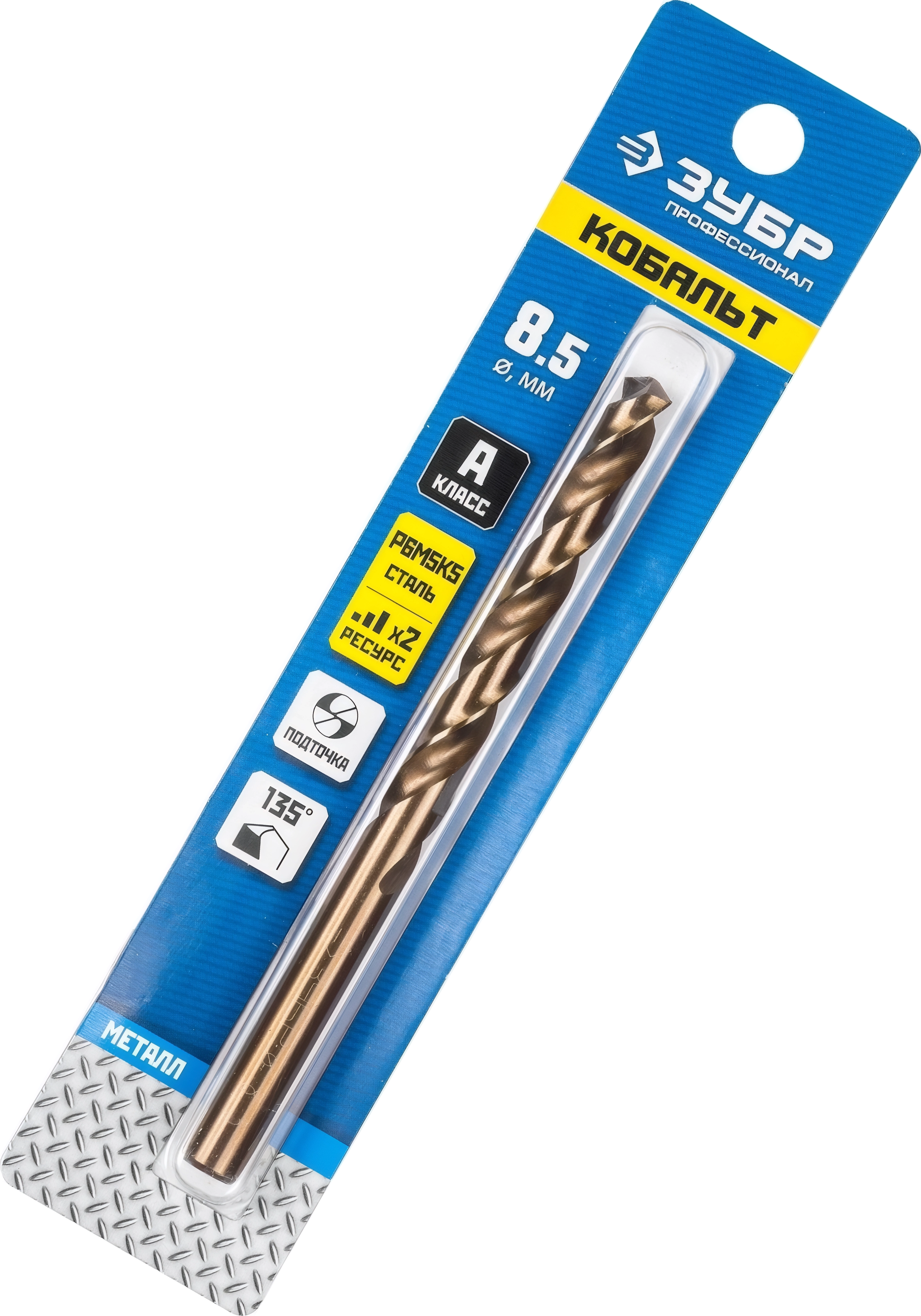 Сверло по металлу ЗУБР Кобальт 8.5 х 117 мм сталь Р6М5К5 класс А