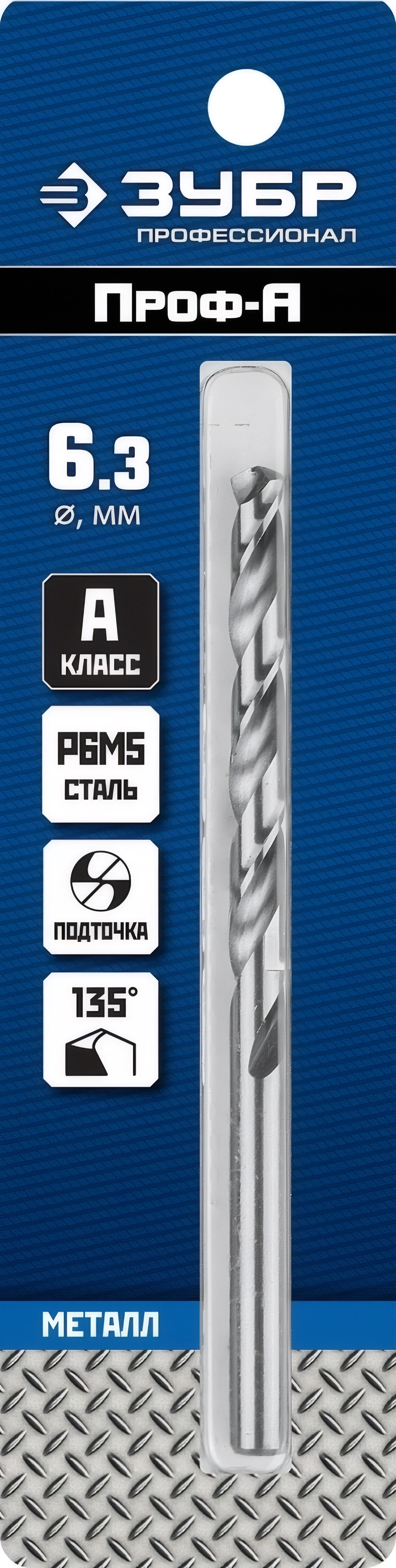 Сверло по металлу ЗУБР ПРОФ-А, 6.3 х 101 мм, сталь Р6М5, класс А