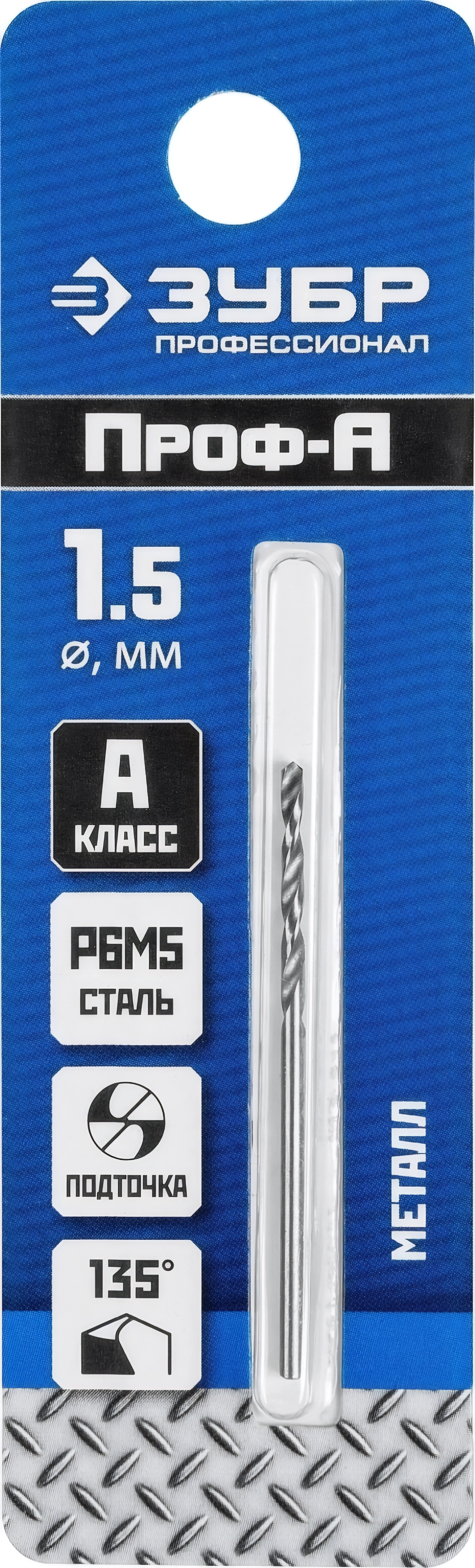 Сверло по металлу ЗУБР ПРОФ-А 1.5 х 40 мм сталь Р6М5 класс А