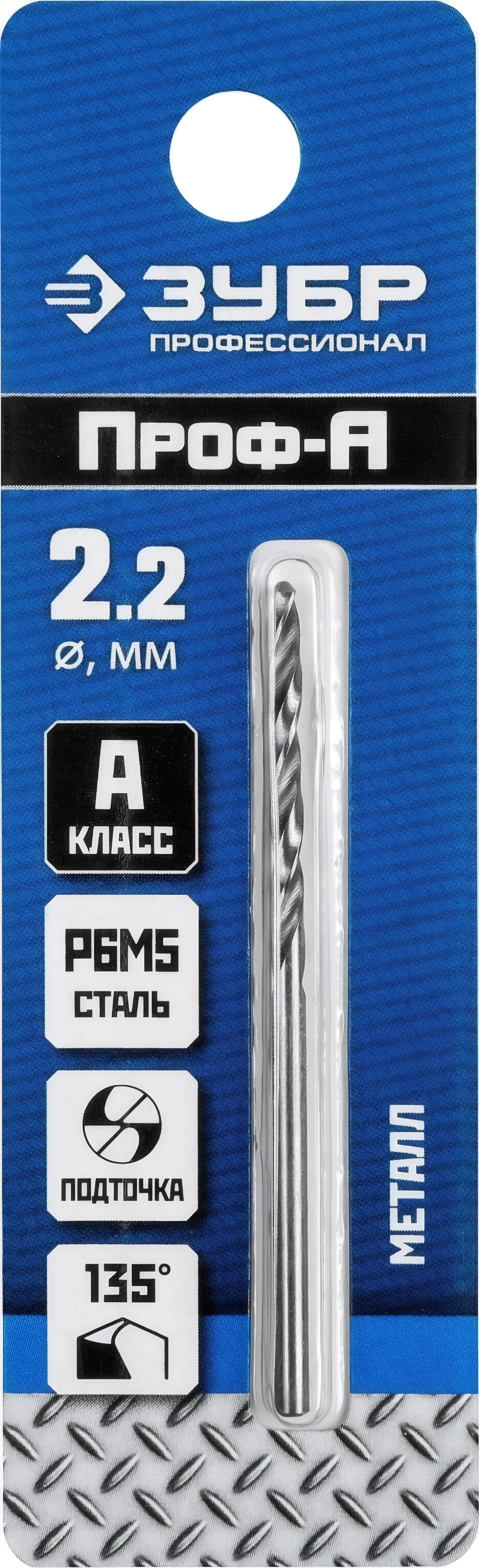 Сверло по металлу ЗУБР ПРОФ-А 2.2 х 53 мм сталь Р6М5 класс А