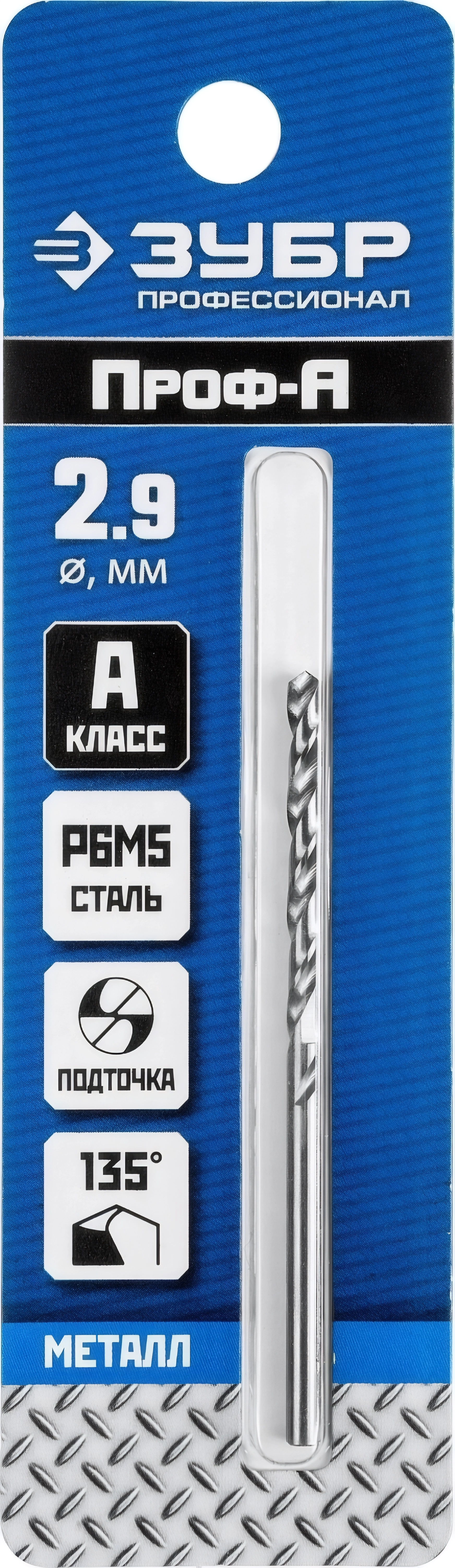 Сверло по металлу ЗУБР ПРОФ-А 2.9 х 61 мм сталь Р6М5 класс А