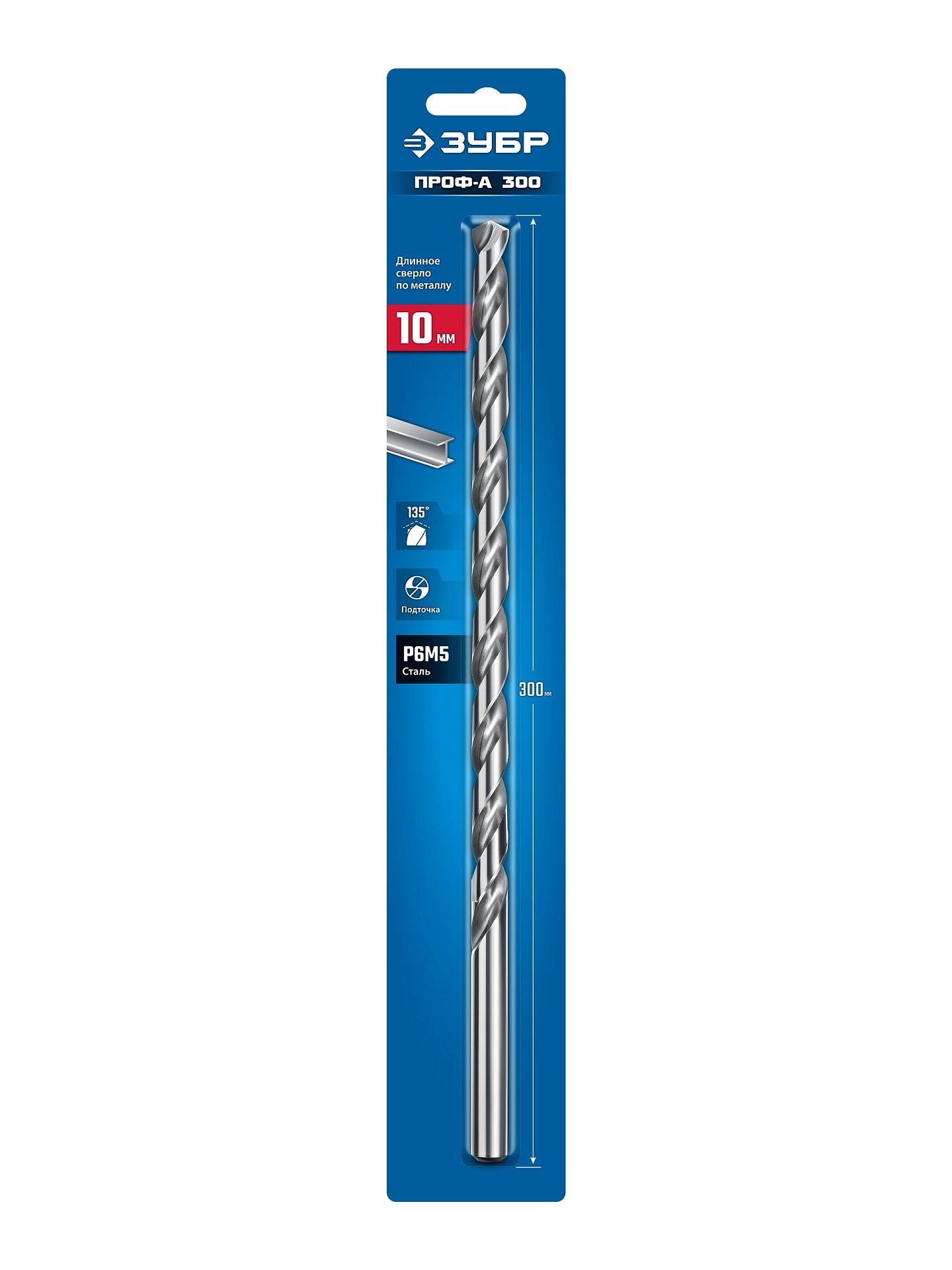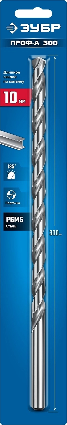 Сверло по металлу ЗУБР ПРОФ-А 300 (10х300 мм, Р6М5), Класс А
