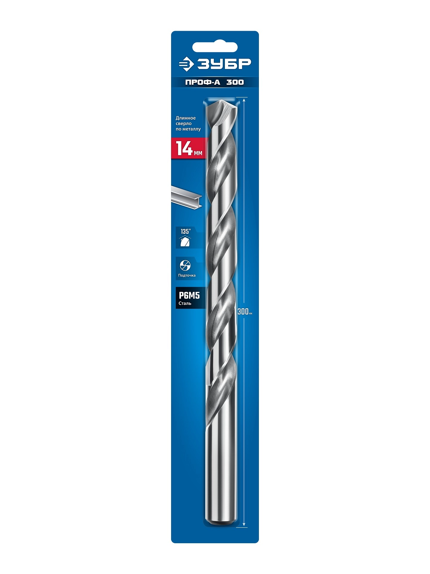 Сверло по металлу ЗУБР ПРОФ-А 300 (14х300 мм, Р6М5), Класс А