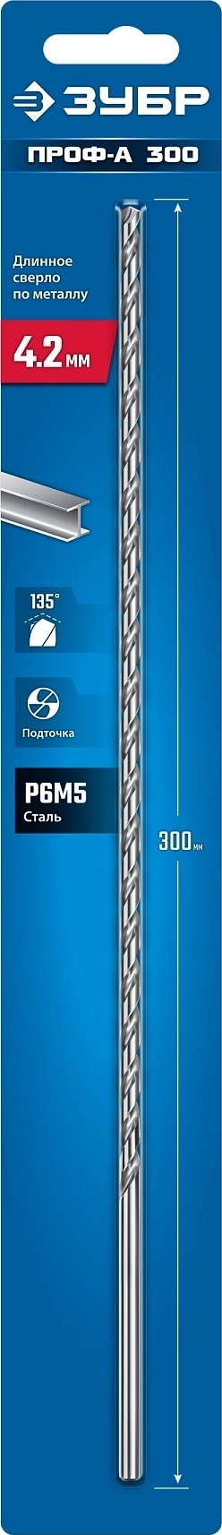 Сверло по металлу ЗУБР ПРОФ-А 300 (4.2х300 мм, Р6М5), Класс А