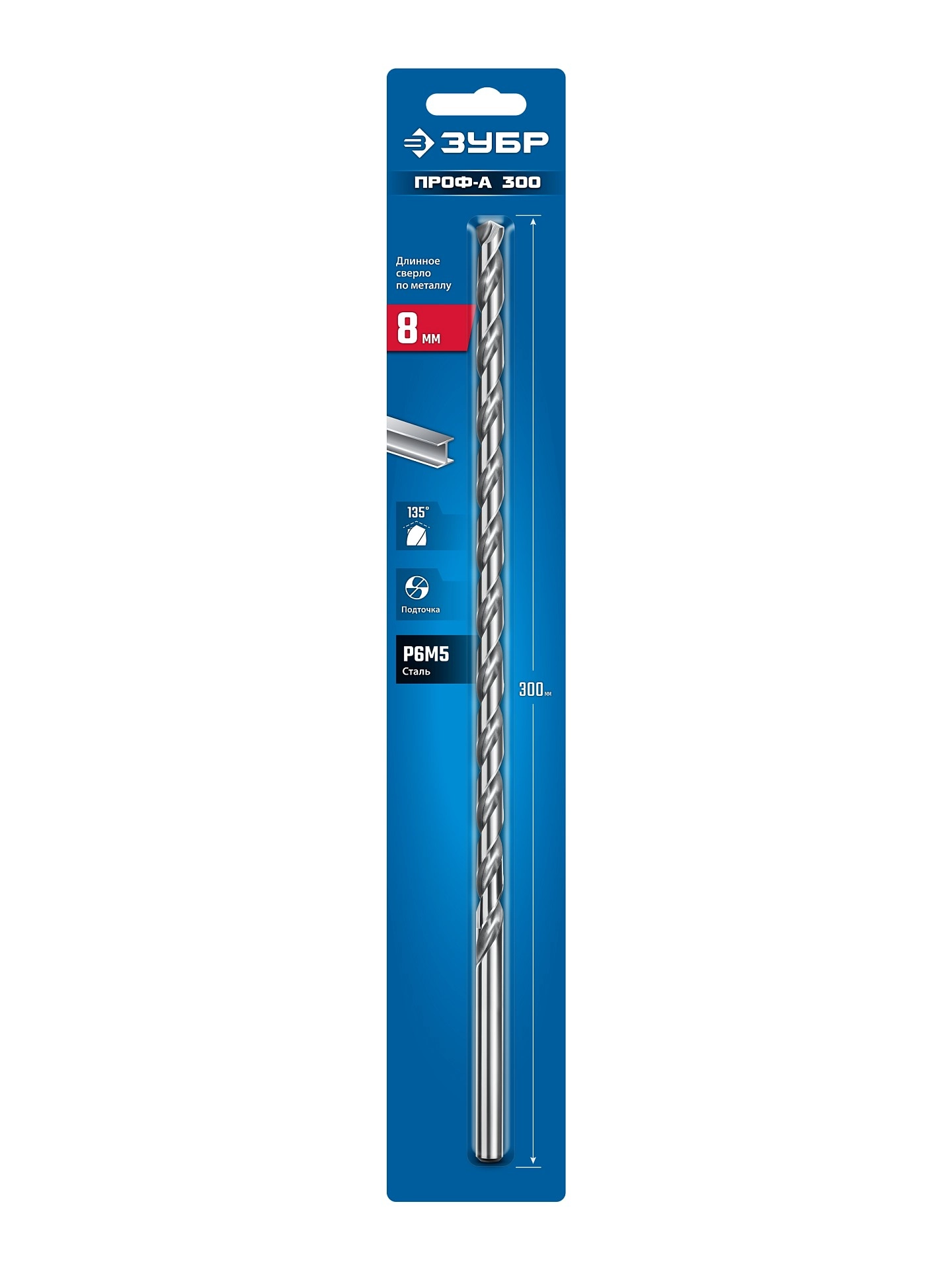 Сверло по металлу ЗУБР ПРОФ-А 300 (8х300 мм, Р6М5), Класс А