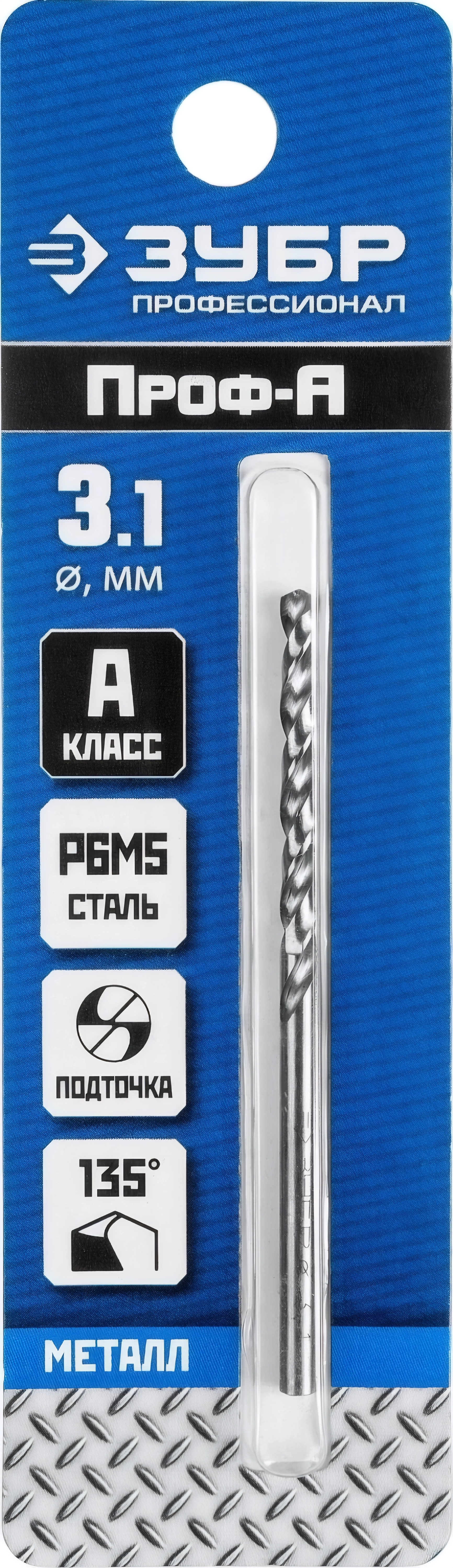 Сверло по металлу ЗУБР ПРОФ-А 3.1 х 65 мм сталь Р6М5 класс А