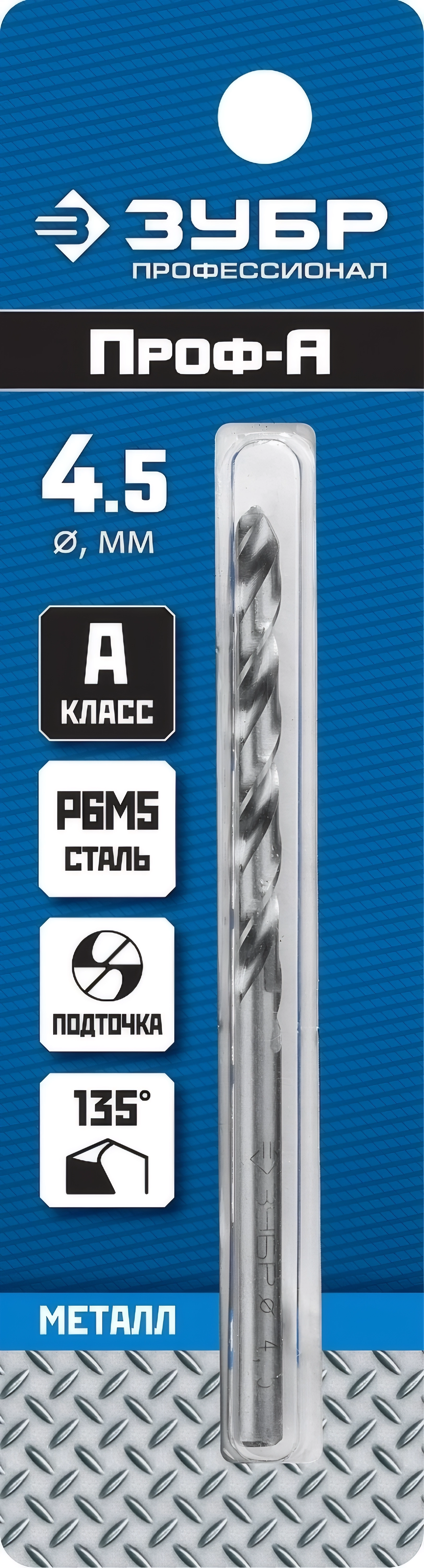 Сверло по металлу ЗУБР ПРОФ-А 4.5 х 80 мм сталь Р6М5 класс А