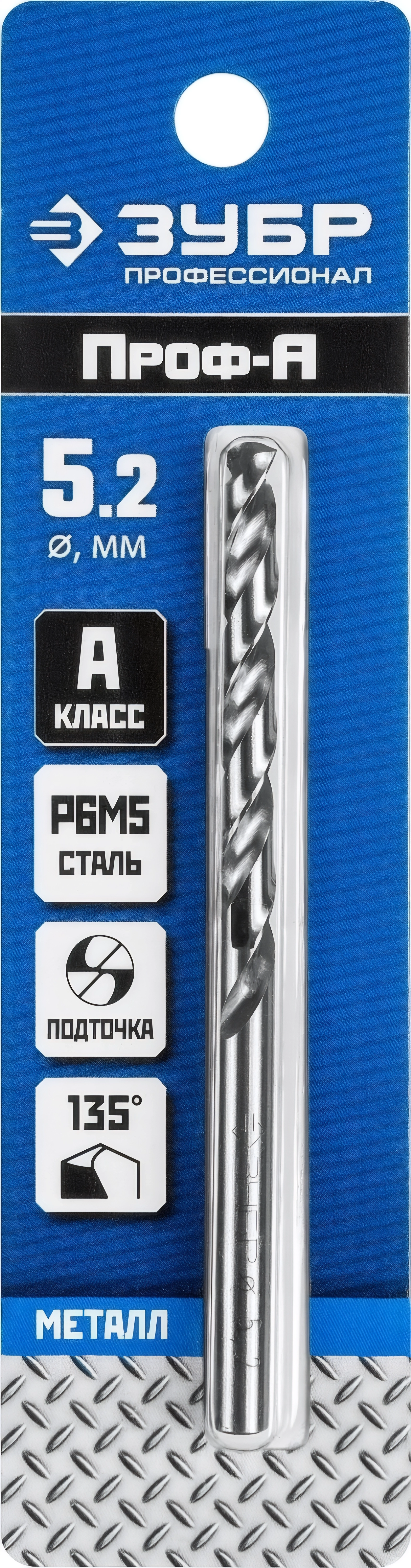 Сверло по металлу ЗУБР ПРОФ-А 5.2 х 86 мм сталь Р6М5 класс А