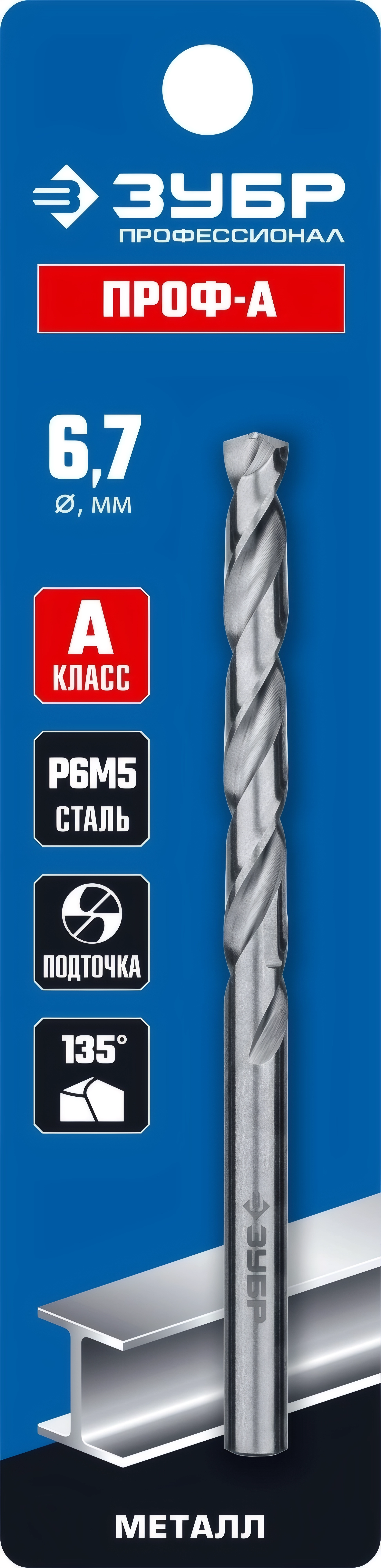 Сверло по металлу ЗУБР ПРОФ-А 6.7 х 101 мм сталь Р6М5 класс А