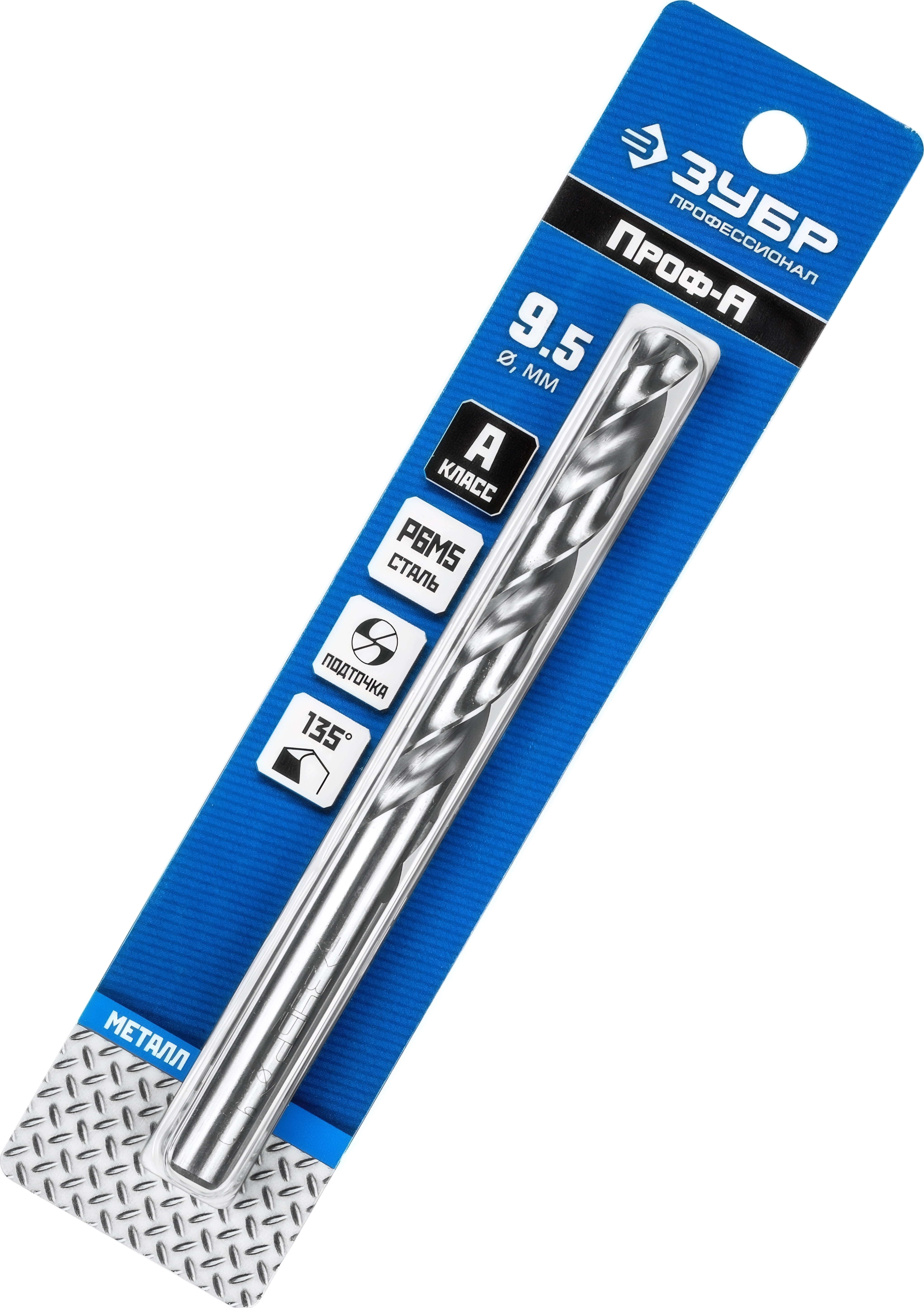 Сверло по металлу ЗУБР ПРОФ-А 9.5 х 125 мм сталь Р6М5 класс А