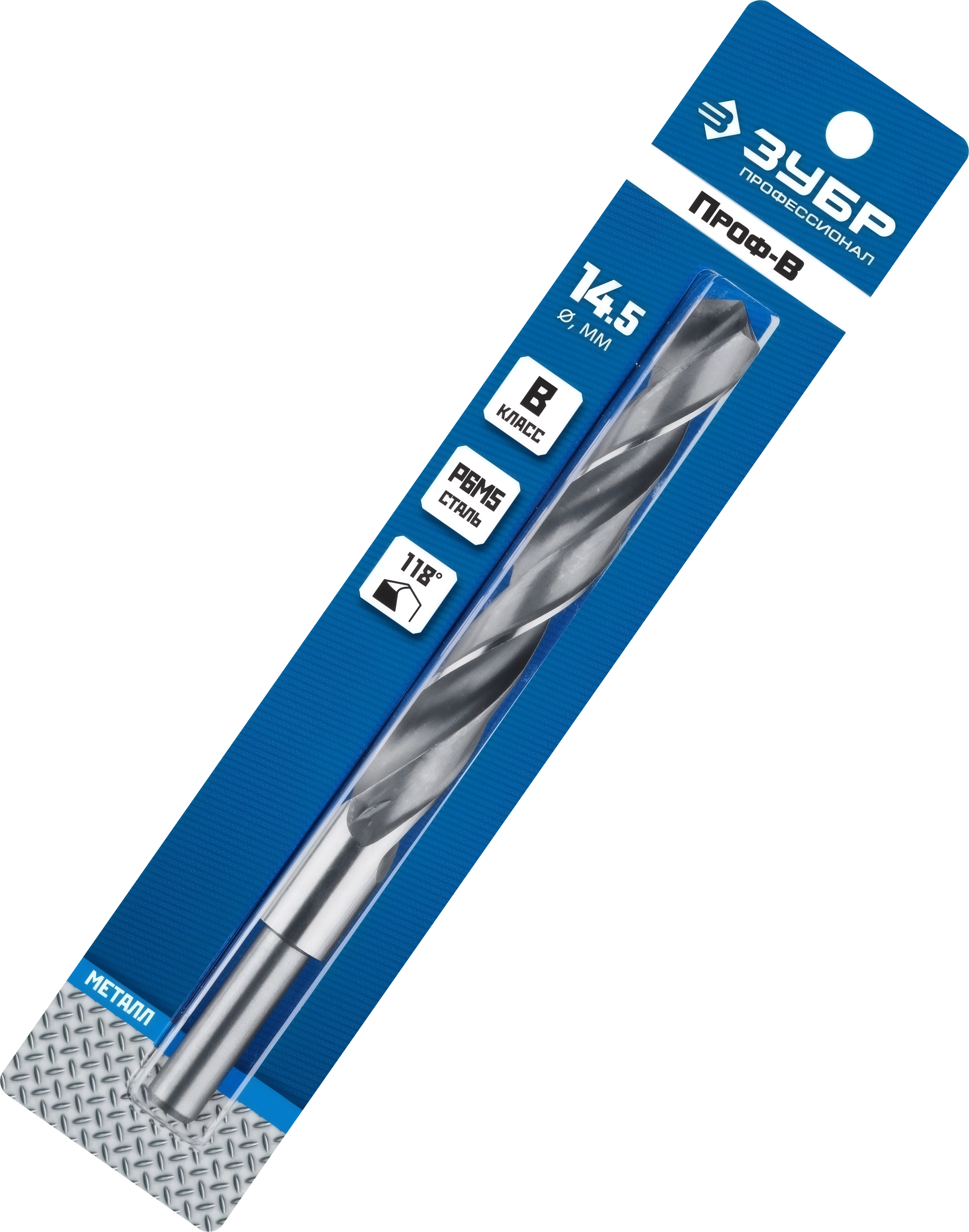 Сверло по металлу ЗУБР ПРОФ-В 14.5 х 169 мм сталь Р6М5 класс В проточенный хвостовик