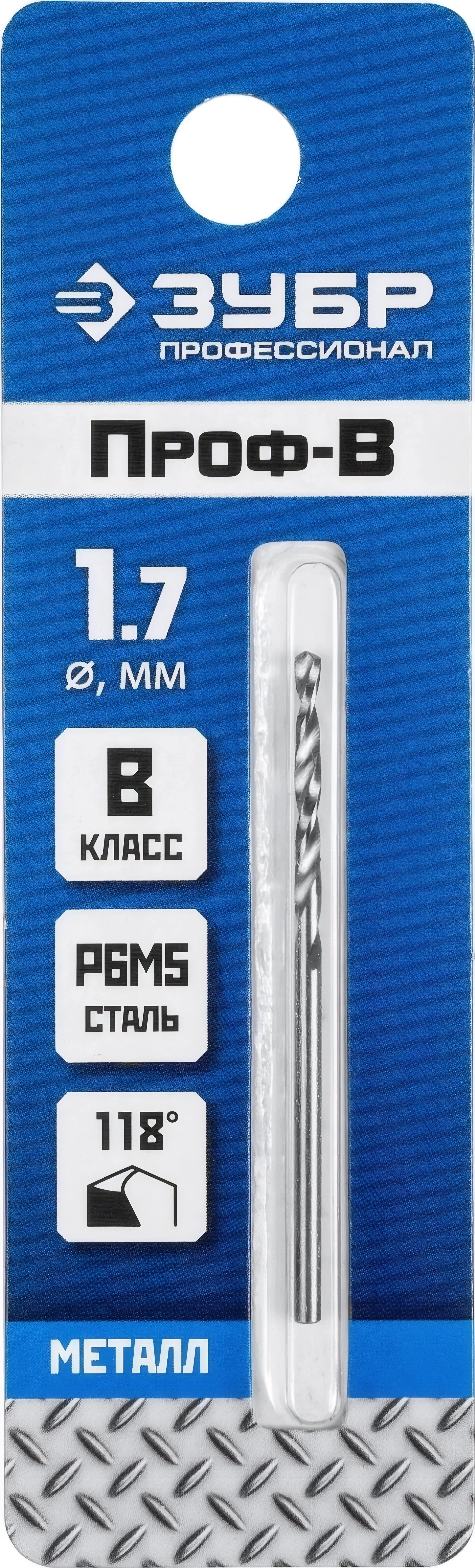 Сверло по металлу ЗУБР ПРОФ-В 1.7 х 43 мм сталь Р6М5 класс В