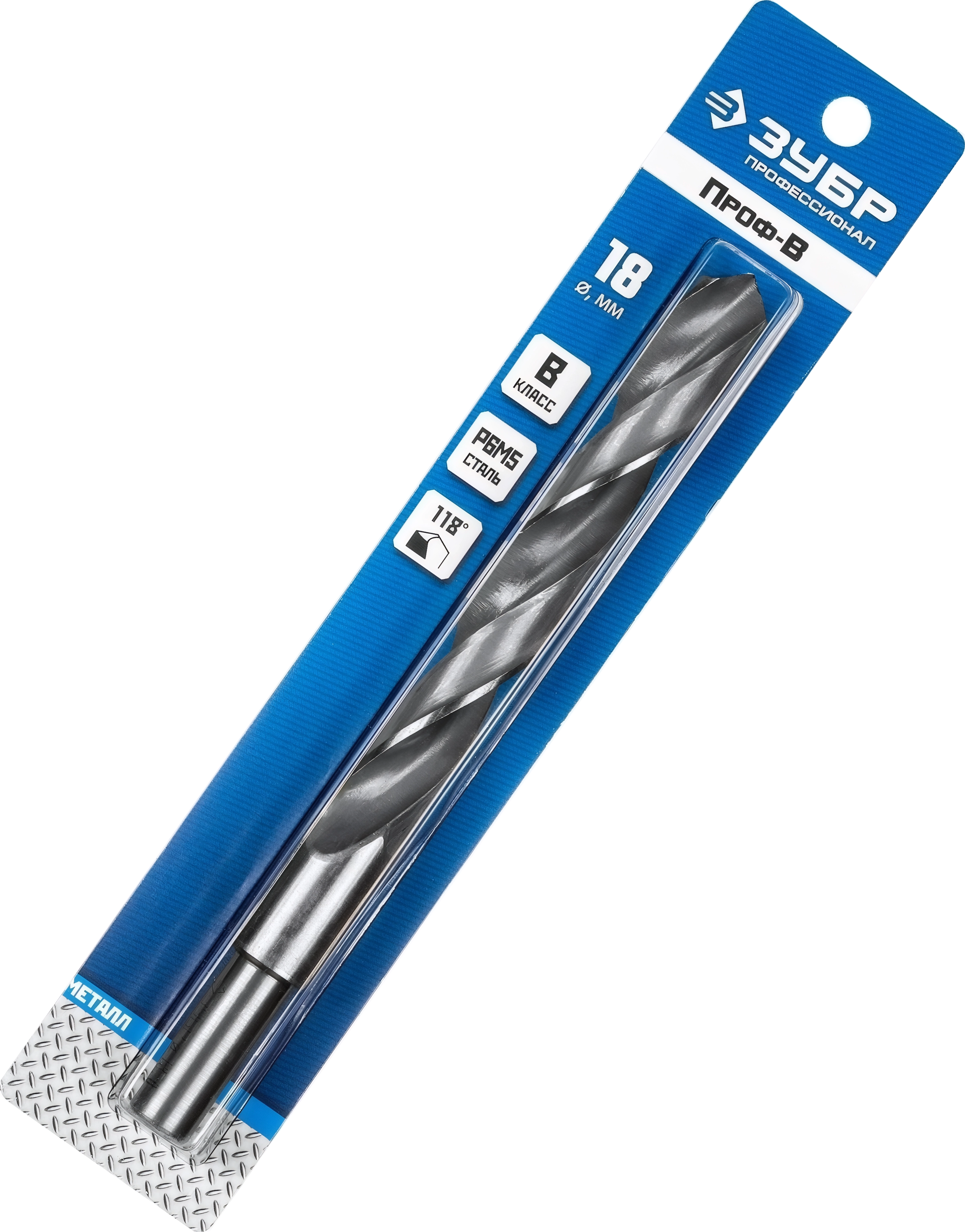 Сверло по металлу ЗУБР ПРОФ-В 18.0 х 191 мм сталь Р6М5 класс В проточенный хвостовик