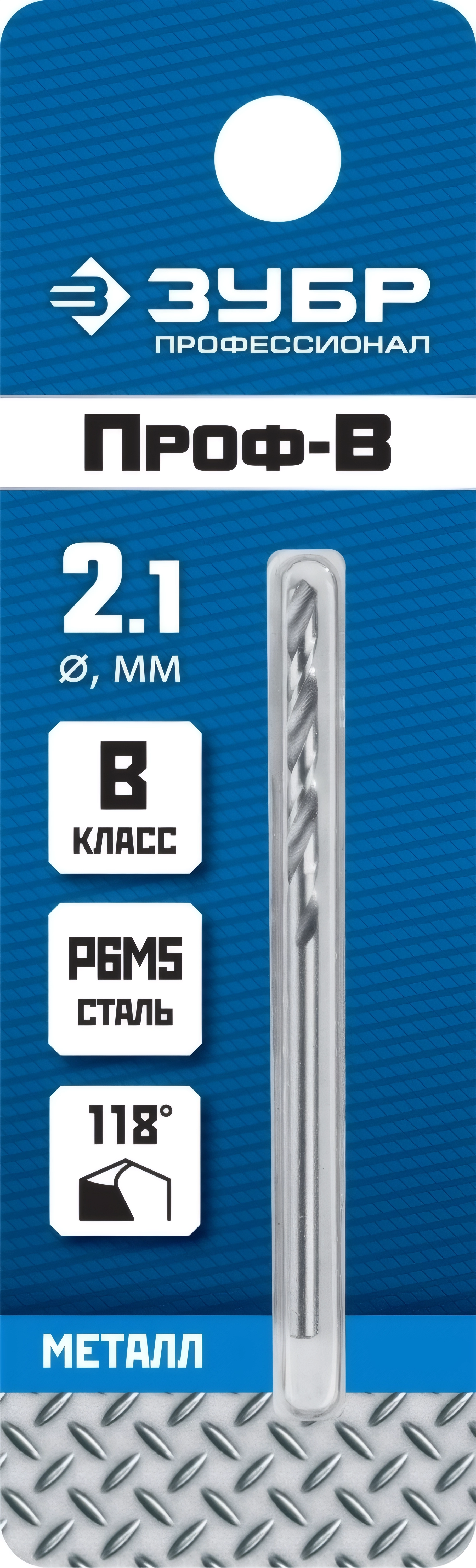 Сверло по металлу ЗУБР ПРОФ-В 2.1 х 49 мм сталь Р6М5 класс В