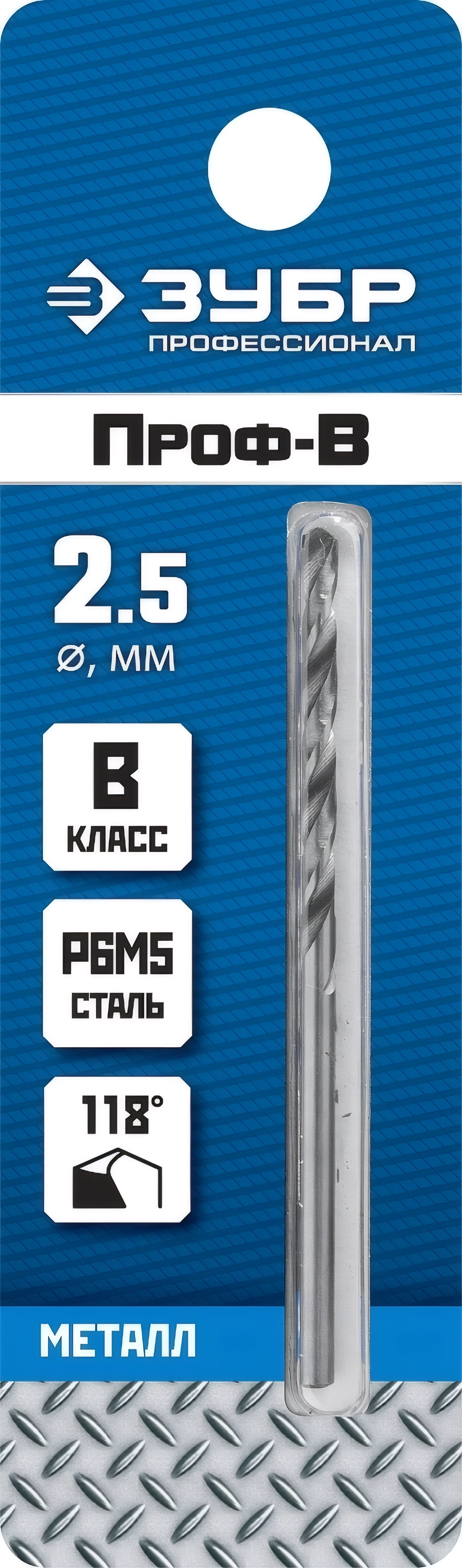 Сверло по металлу ЗУБР ПРОФ-В 2.5 х 57 мм сталь Р6М5 класс В