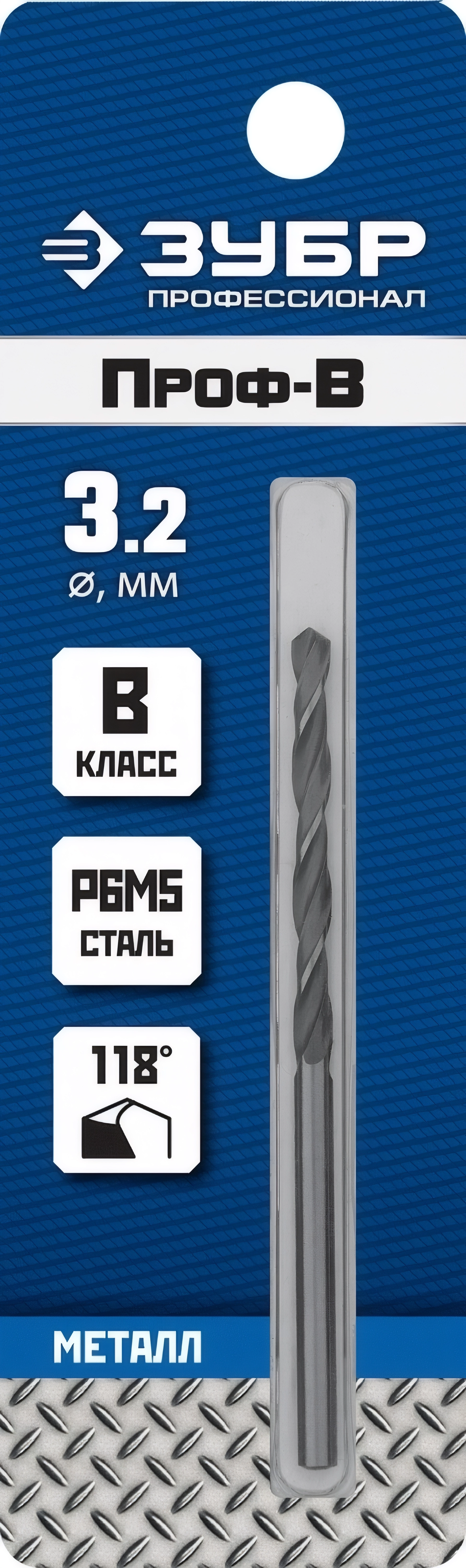 Сверло по металлу ЗУБР ПРОФ-В 3.2 х 65 мм сталь Р6М5 класс В