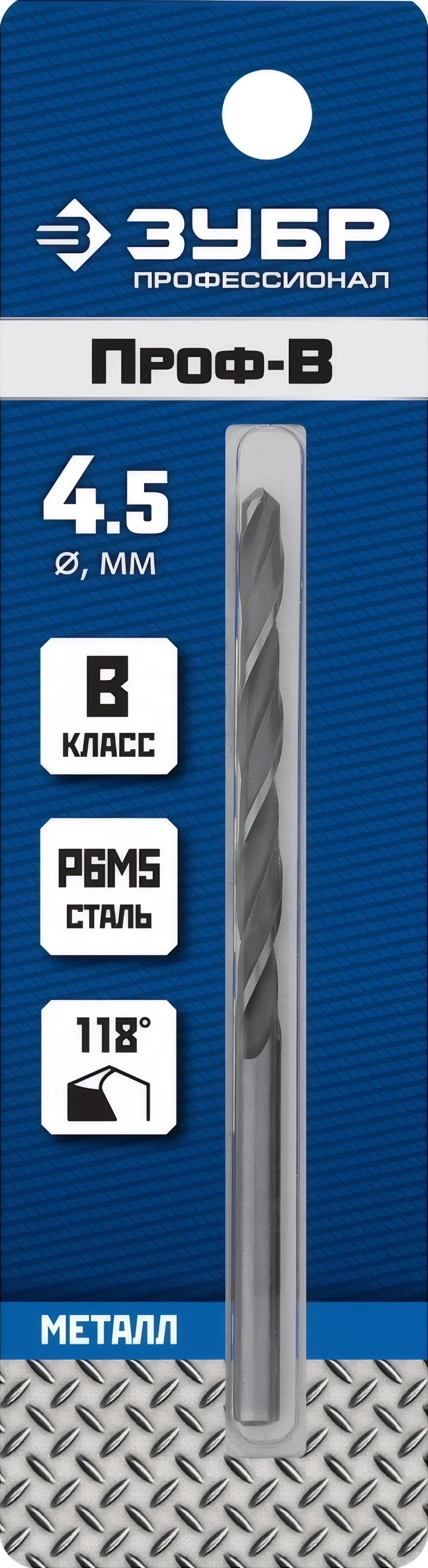 Сверло по металлу ЗУБР ПРОФ-В 4.5 х 80 мм сталь Р6М5 класс В