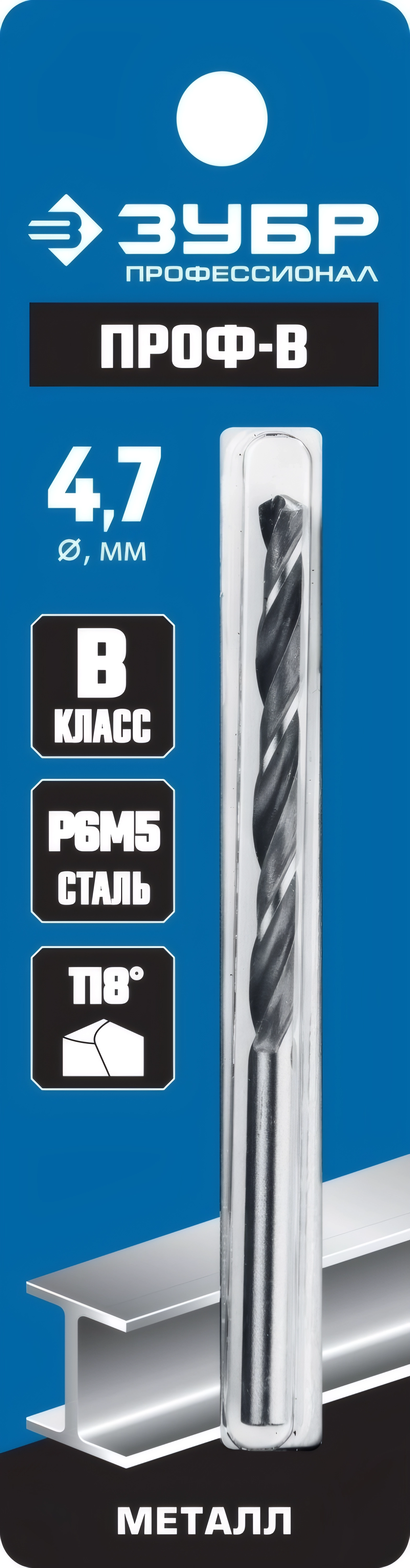 Сверло по металлу ЗУБР ПРОФ-В 4.7 х 80 мм сталь Р6М5 класс В