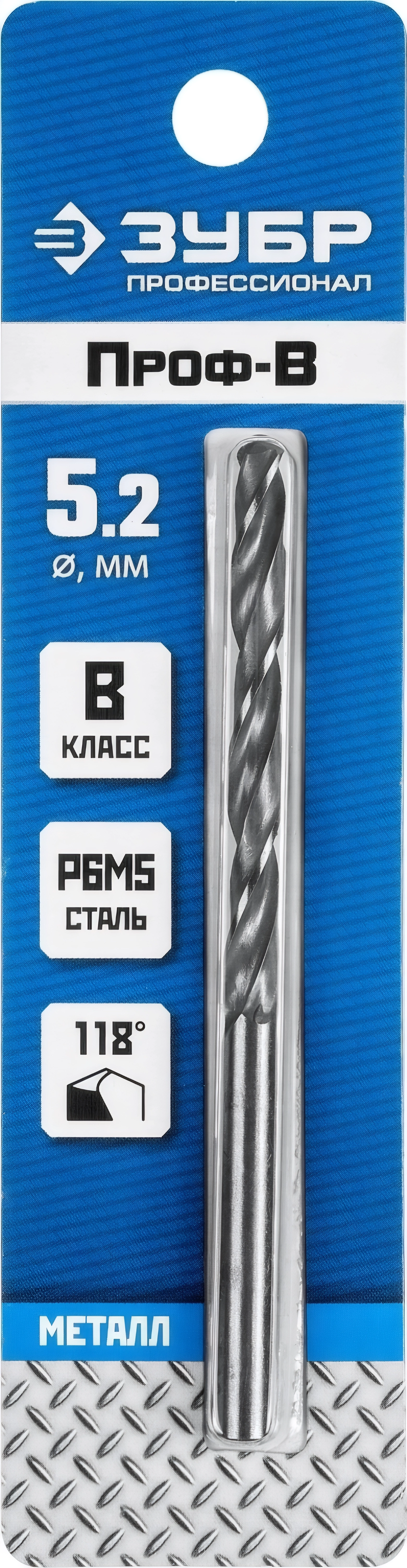 Сверло по металлу ЗУБР ПРОФ-В 5.2 х 86 мм сталь Р6М5 класс В