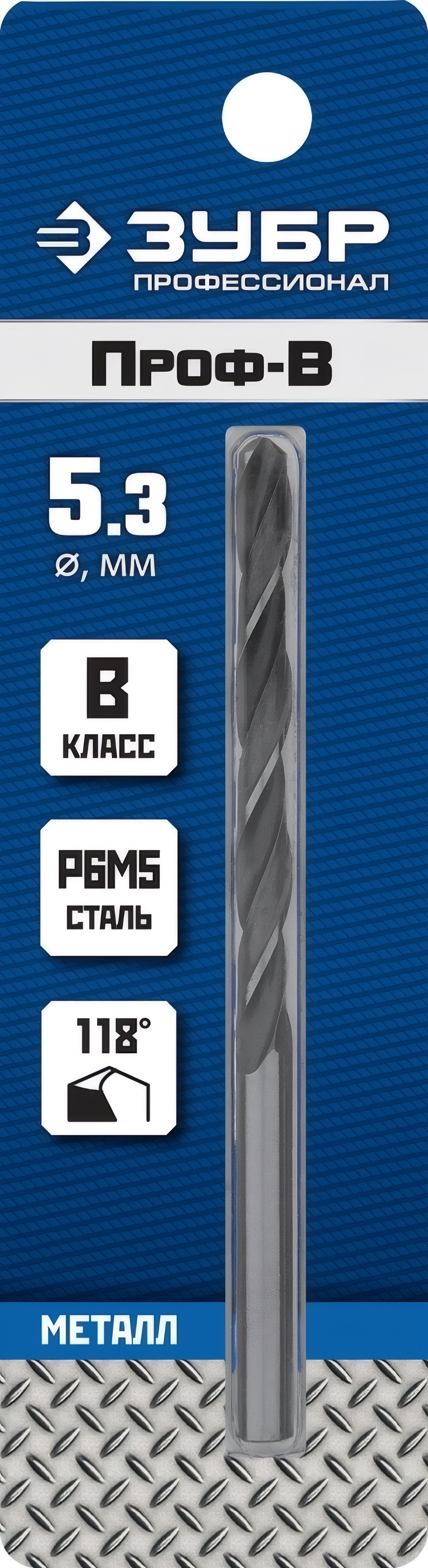 Сверло по металлу ЗУБР ПРОФ-В 5.3 х 86 мм сталь Р6М5 класс В