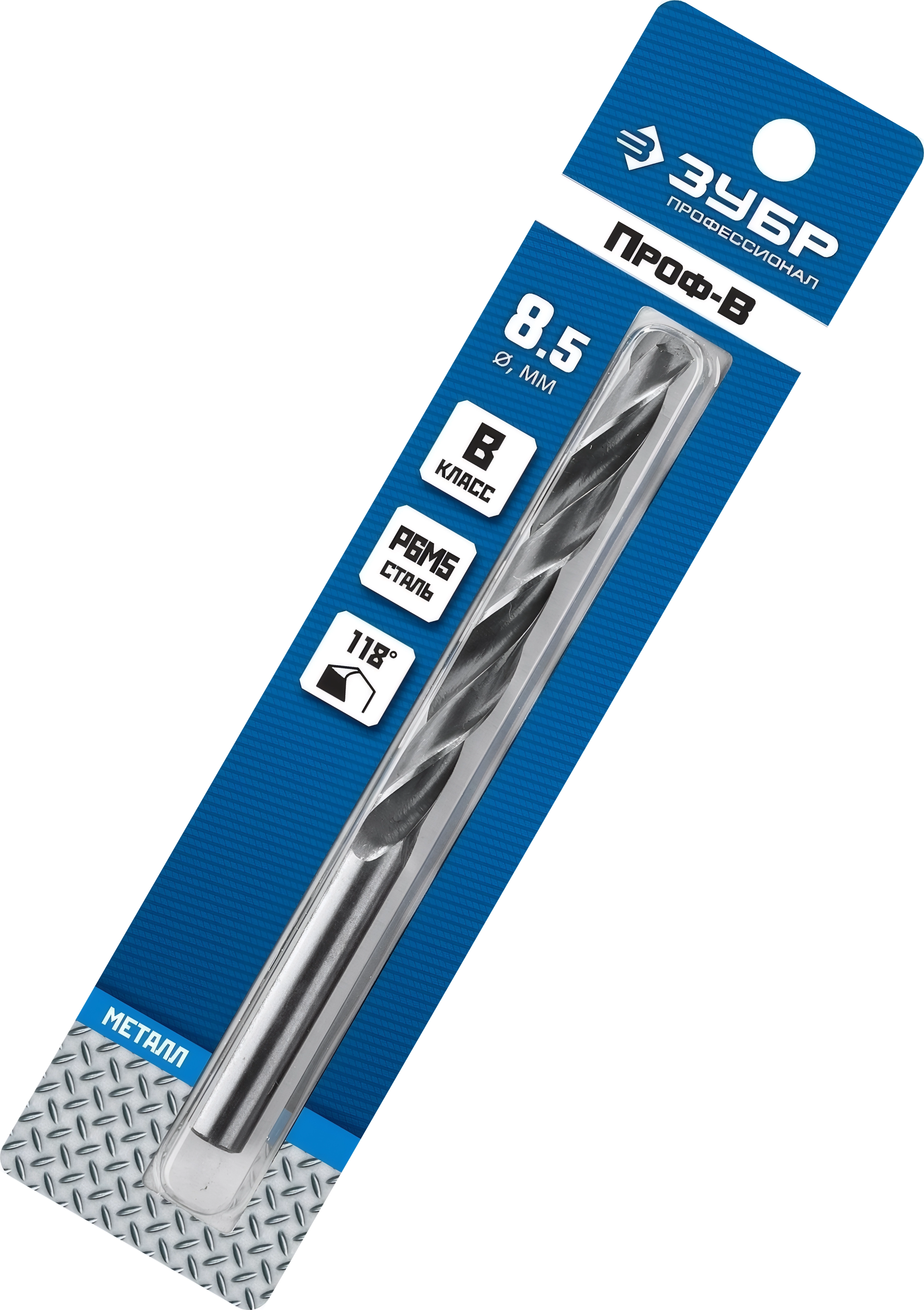 Сверло по металлу ЗУБР ПРОФ-В 8.5 х 117 мм сталь Р6М5 класс В